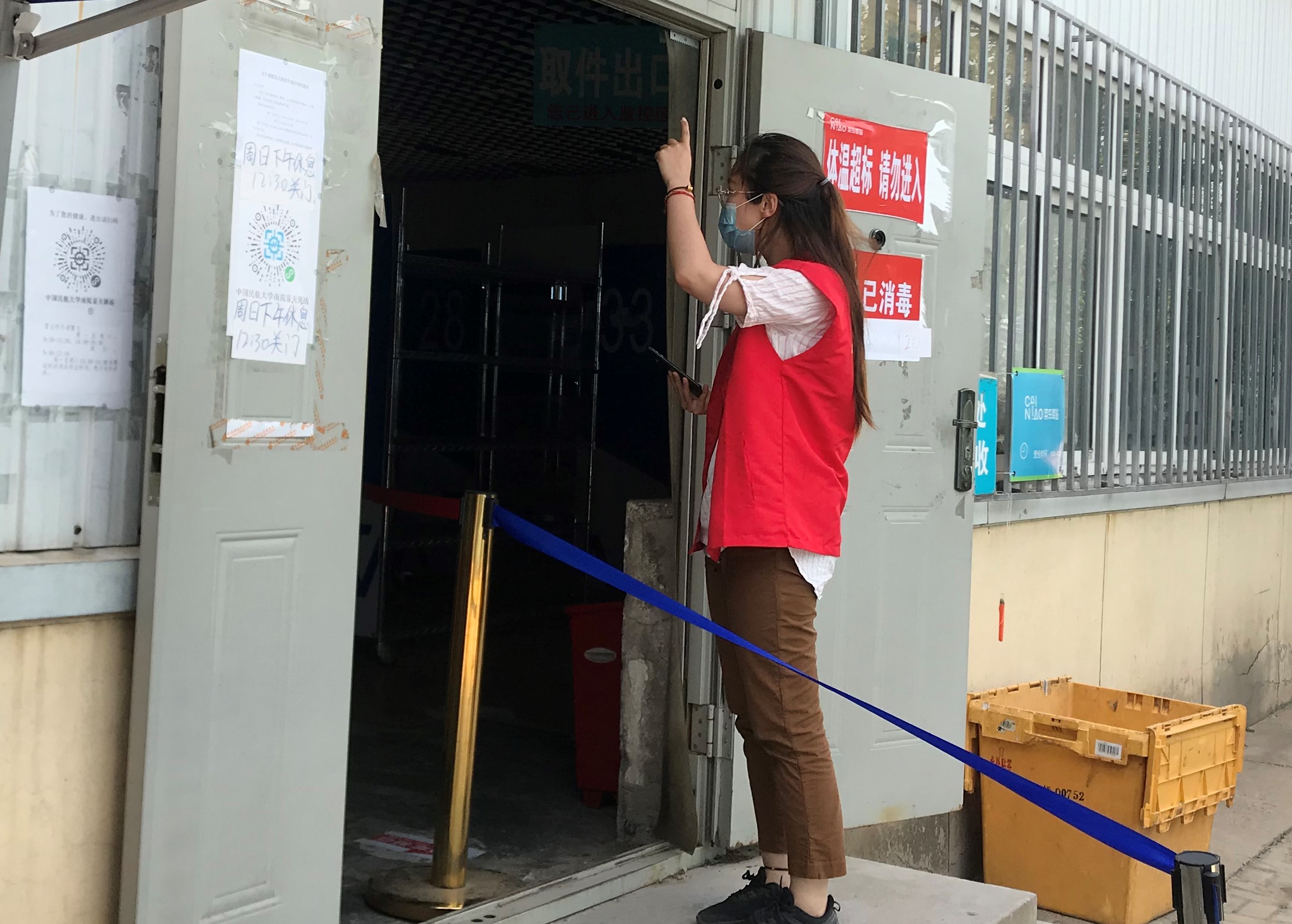 疫情防控期间 刘芳洋身着“红马甲”在校内巡逻