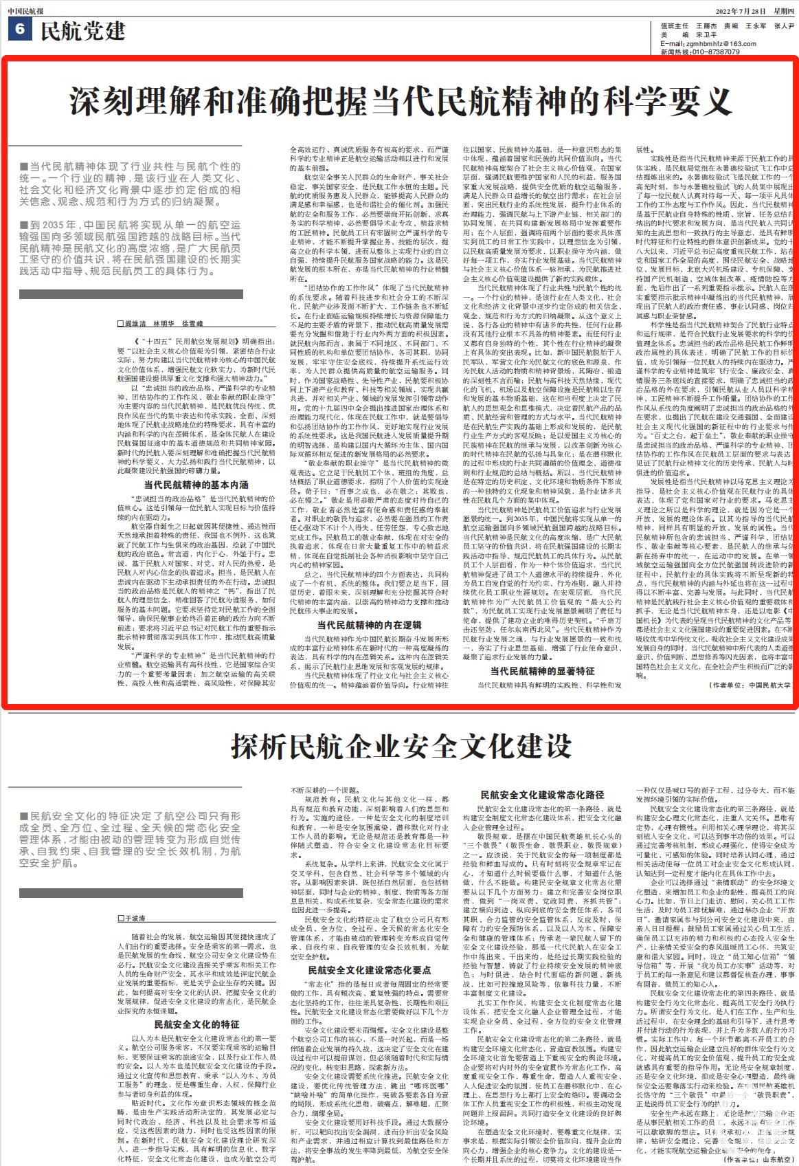当代民航精神具有鲜明的实践性、科学性和发展性。