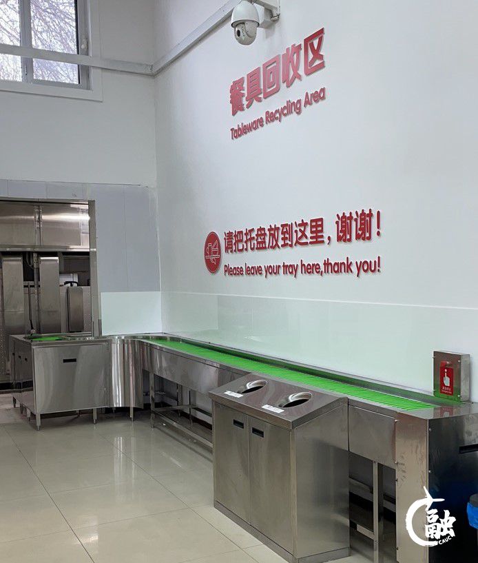 北三食堂增加一台自动收取餐具的传送带,师生吃完饭后将餐具放在传送带上,餐具就自动传送到清洗窗口内,方便快捷。