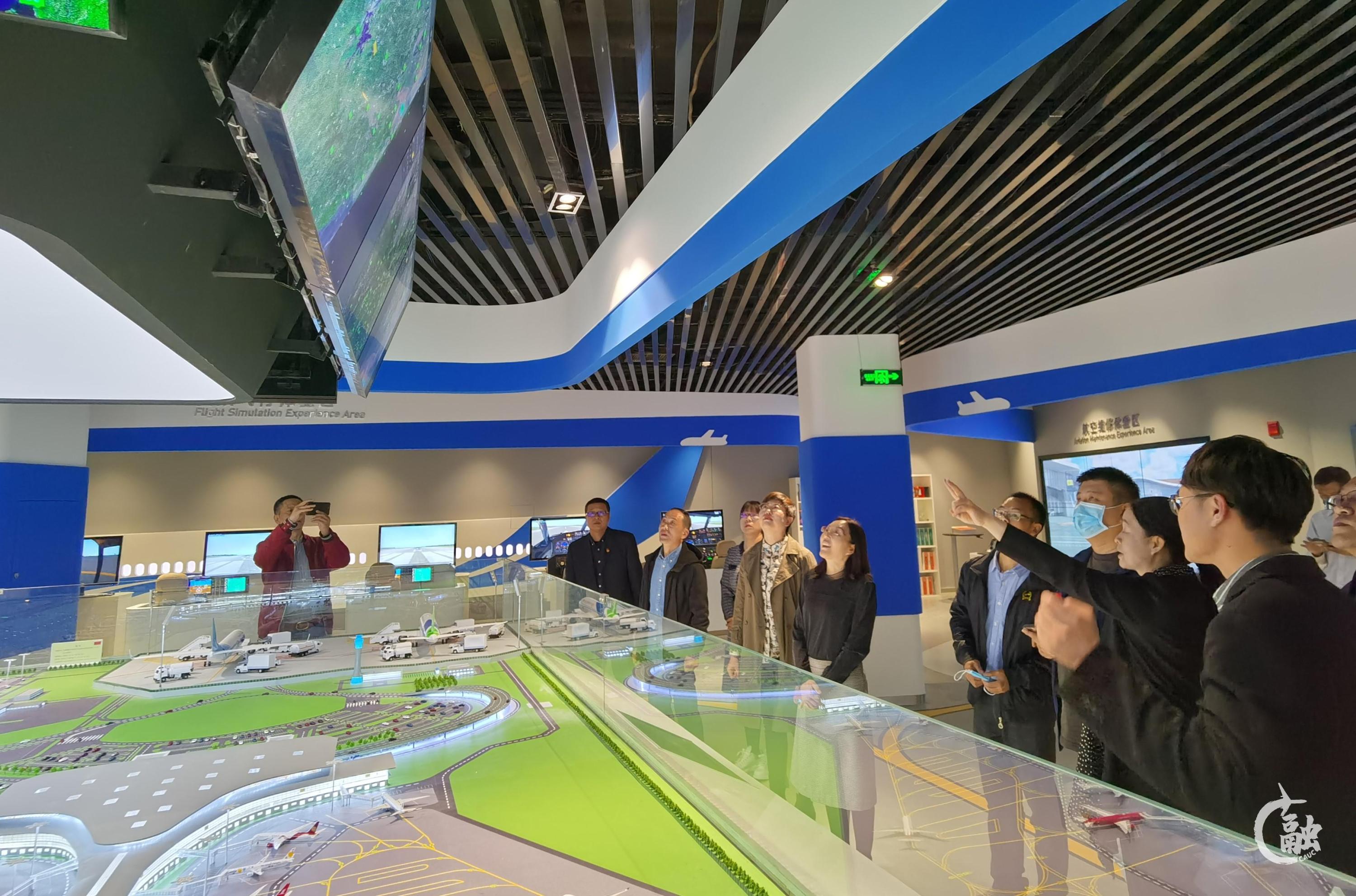 座谈会后,河东教育局一行走访参观机务维修立体化教学中心(民航体验馆)、停机坪、模拟机中心等教学实践基地。