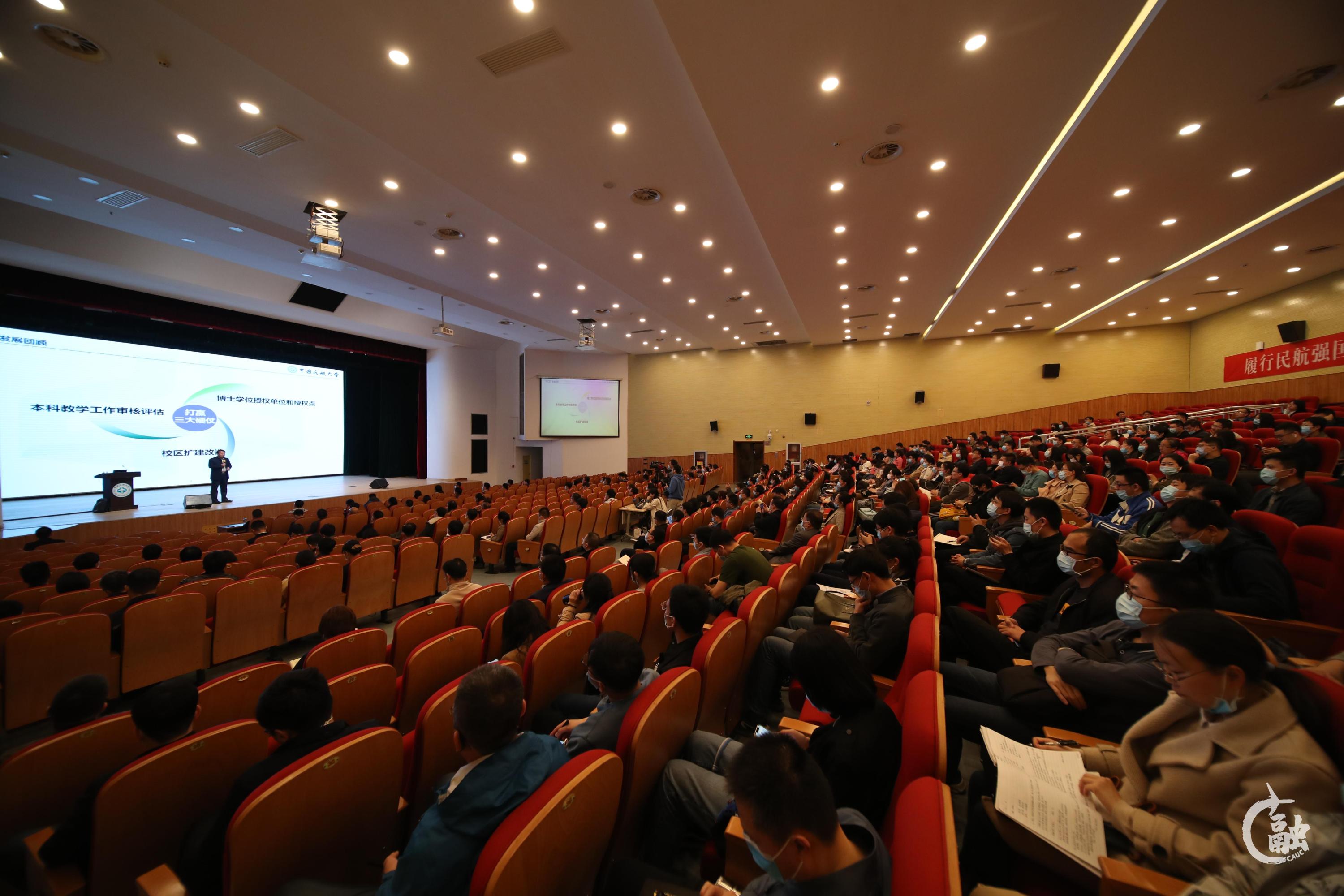 本网讯 4月8日,中国民航大学2021年工作报告宣讲会在北院大礼堂举行,进一步动员、凝聚广大教职员工力量,形成高度共识,推进高质量发展,为“十四五”开好局、起好步。校长丁水汀主讲,学校青年教师、专业负责人、学科方向负责人、校蓝天青年学者、蓝天教学名师培育计划人选与会。