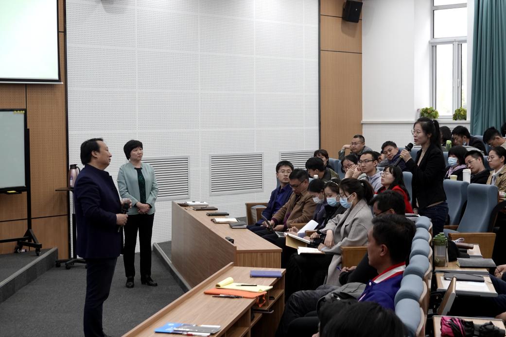 培训会结束以后,丁水汀与在场教师们进行亲切交谈和互动,对教师们提出的问题一一进行了详细解答。不少教师分享了自己听课感受,电子信息与自动化学院教师左盼盼说:“对校长提到人才培养理工结合感触颇深,只有理学与民航实际结合,更便于学生理解。如学校内部多个学院都有与电磁相关的教学和研究,与其他高校也有深度合作,要想打造行业领先就需要加强整合资源,交叉融合。”