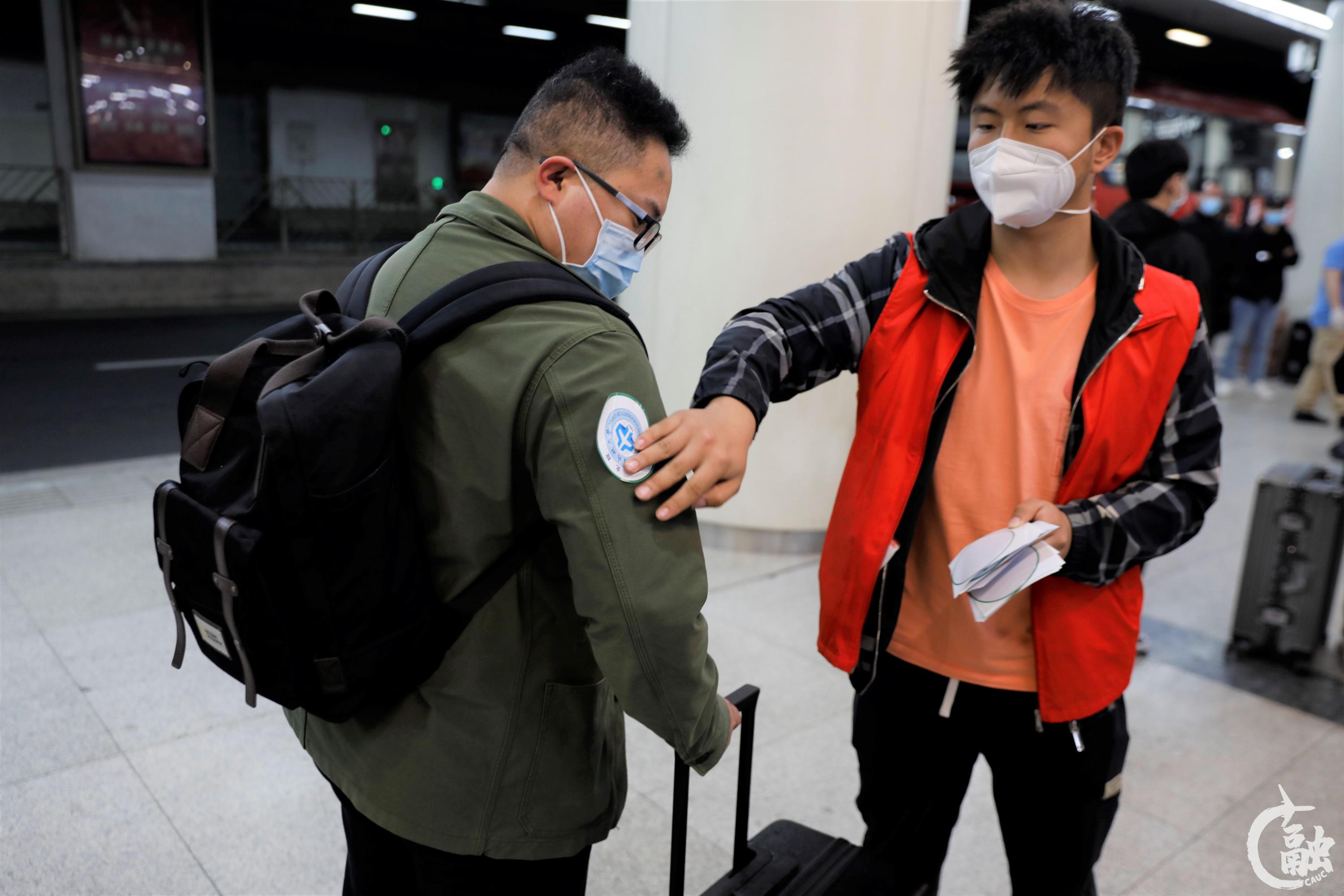 “从安慰同学们在家好好上网课,等待第二批返校通知,到亲口通知大家准备第二批返校,再到接应大家返校,是一件十分有成就感的事情。”2021级法学院的保富义既是班长又是志愿者,从返校前的数据统计工作到返校的志愿接站工作他都参与其中,“目送着班上熟识的同学开心地登上专车前往学校,想着他们终于安安全全地抵达了学校,之前所有的疲惫劳累都一扫而光。”