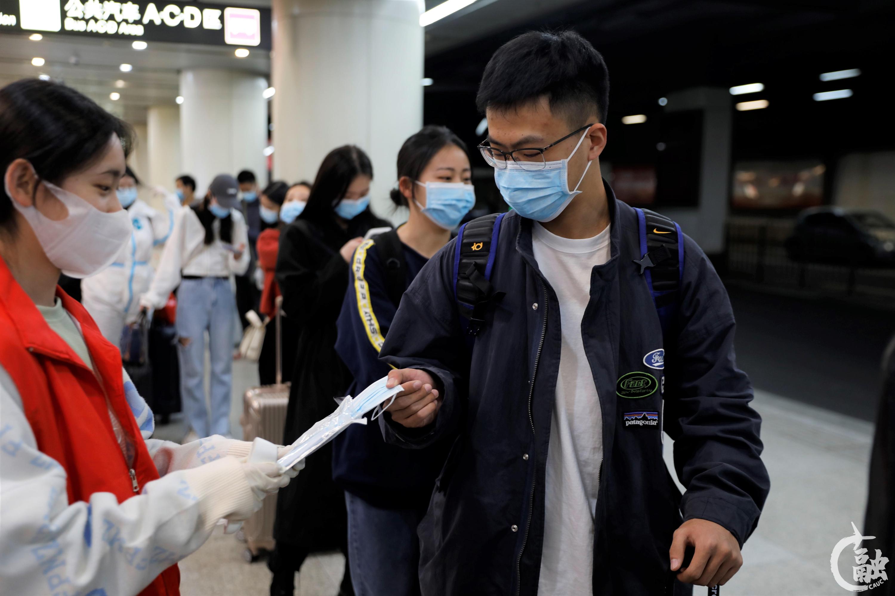 清晨,在大部分学生还在睡梦中时,通过层层选拔的学生志愿者们已经集合准备完毕,前往“三站一场”接站点等候返校学生们的到来。专车“点对点”接站,24小时在岗,护送学生平安到校。按学校要求,返校前学生需在网上坚持14天健康打卡,并签署承诺书,符合条件后得到返校批准。辅导员们时刻通过钉钉与学生保持联系,“一对一”确定学生健康状况和行程信息,精准了解每位学生的状态。在返校途中,辅导员们还及时进行健康提示,提醒学生们中途不要摘下口罩,以及到达志愿者服务点后要及时地更换口罩、测量体温和酒精杀毒。确保学生返校途中的生命安全与身体健康。