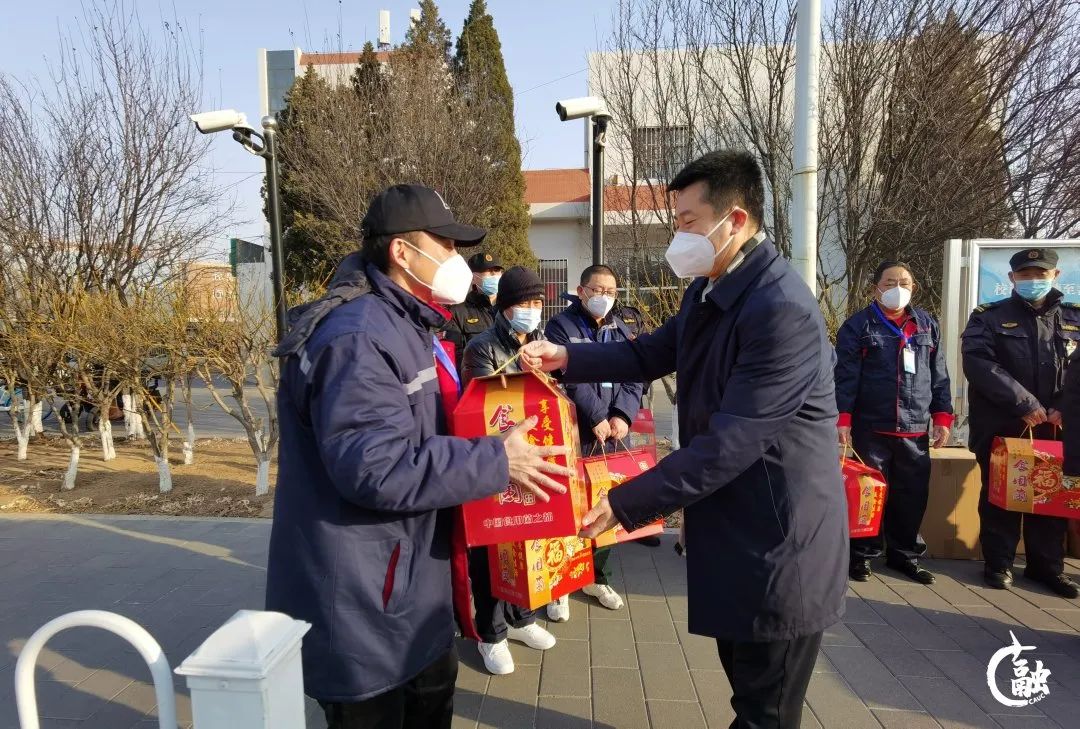 本网讯 辞旧迎新,岁寒情深。1月21日,除夕上午,中国民航大学党委书记曹胜利、工会主席王志强一行对春节期间坚守在校园岗位一线的180余名教职工进行走访慰问,代表学校党委、校工会为他们送去节日的问候和新春的祝福,工会办、人事处、党办校办等相关人员陪同慰问。