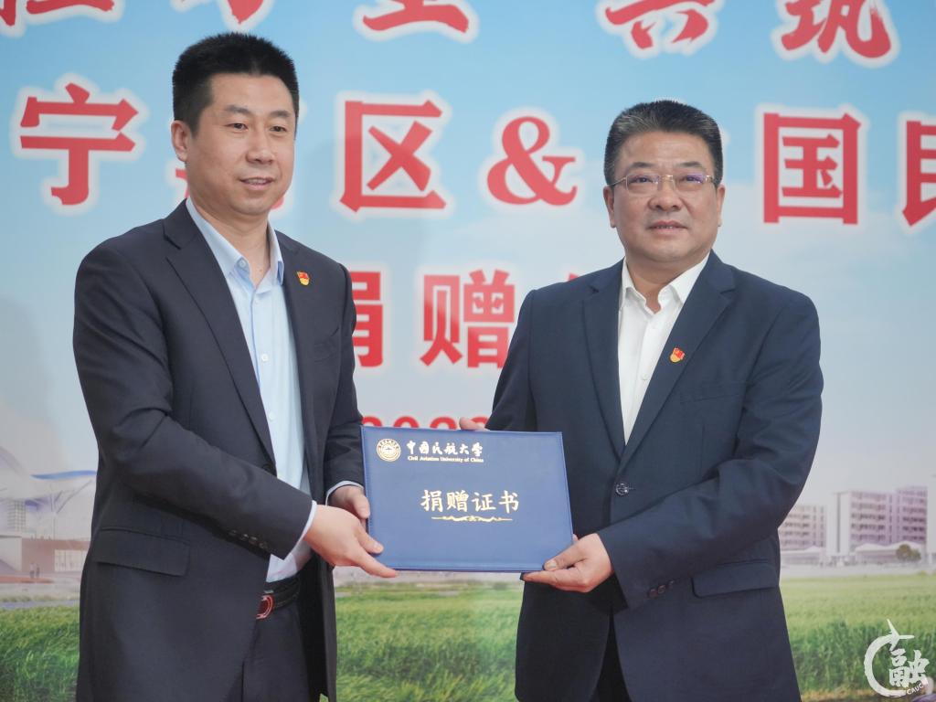 捐赠仪式上,沈洁代表宁河区向中国民航大学宁河校区捐赠共建资金及自行车,徐政华代表学校接受捐赠。曹胜利代表民航大学向惠冰颁发证书。