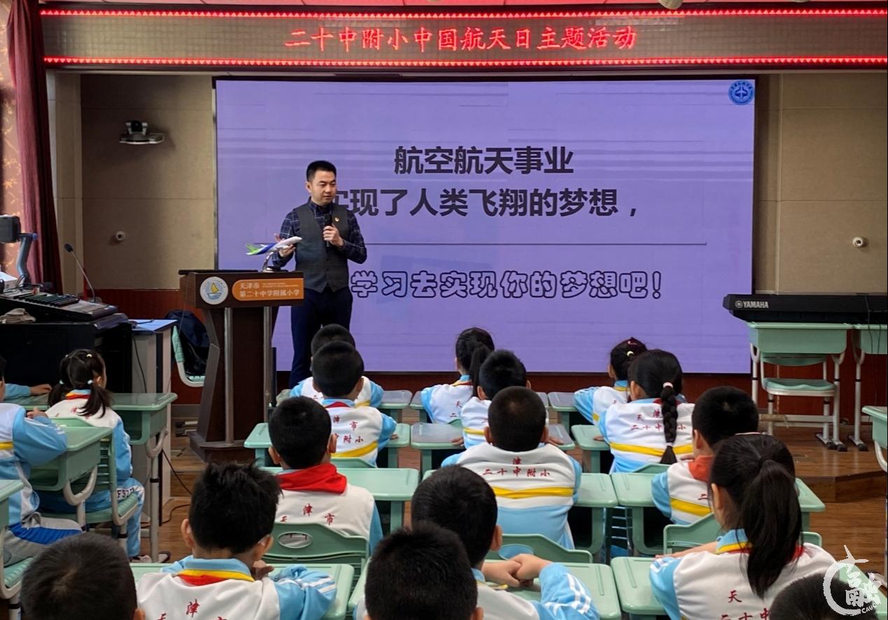 本网讯 4月24日,在第8个“中国航天日”,中国民航大学教师来到天津市二十中附属小学,开展题为“航空航天事业——实现人类飞翔的梦想”的科普知识讲座,讲座通过视频向小学全体师生直播。