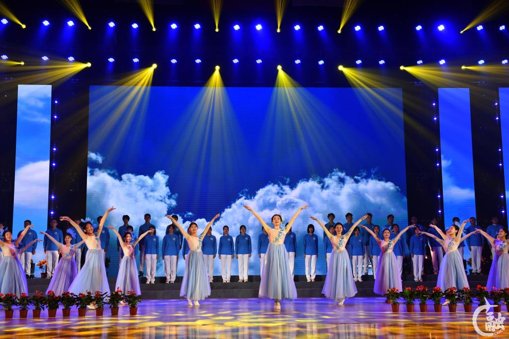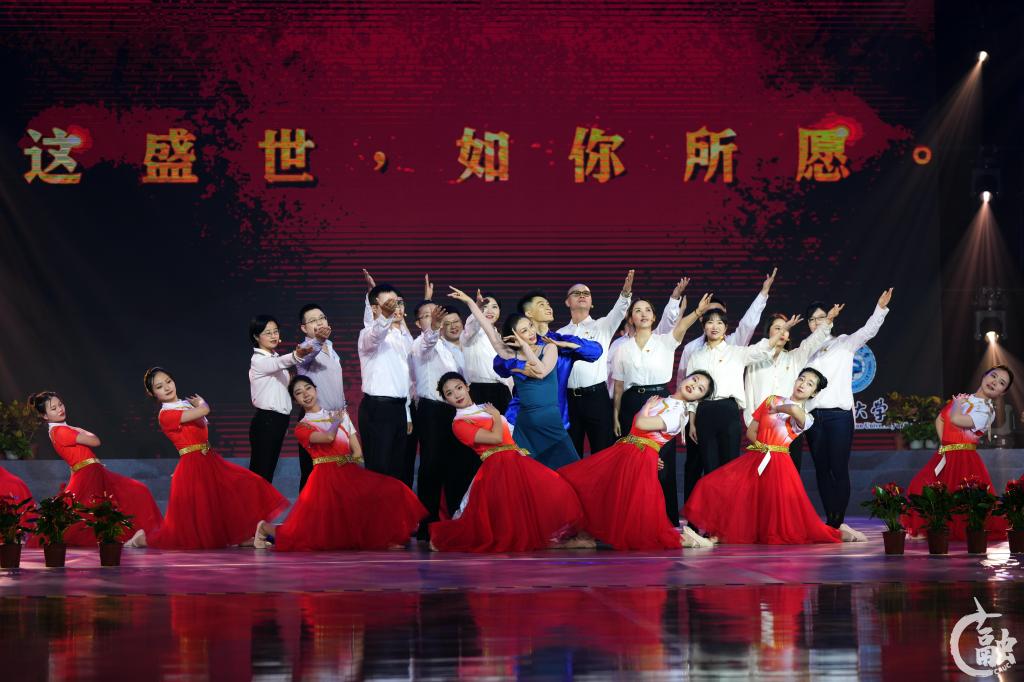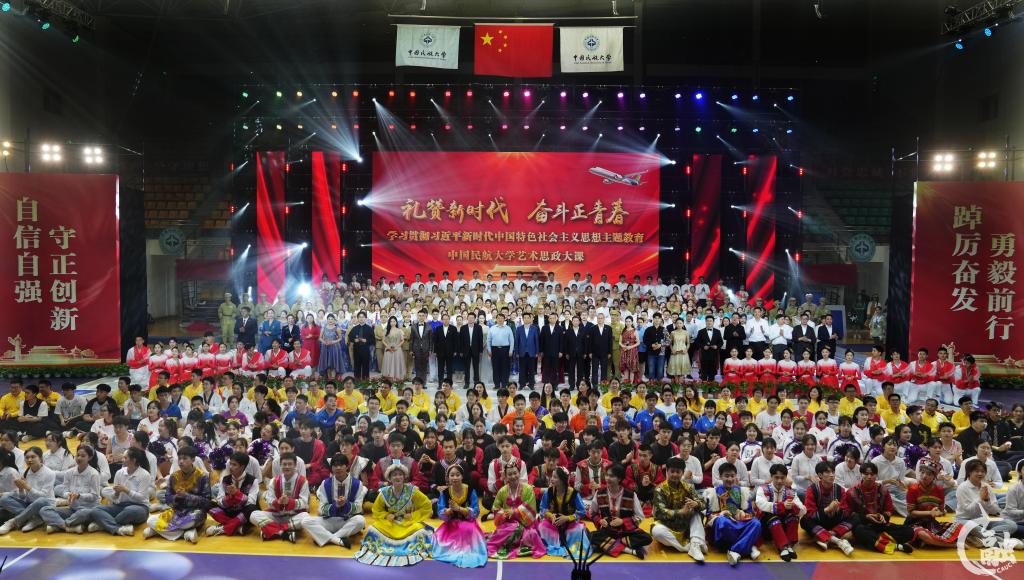 本网讯 近日,中国民航大学“礼赞新时代 奋斗正青春”学习贯彻习近平新时代中国特色社会主义思想主题教育艺术思政大课在东丽南校区体育馆主馆举办。本次艺术思政大课由校工会联合校团委、党委宣传部(教师工作部)、马克思主义学院等单位组织教师文艺骨干和学生文艺爱好者共同举办。校党委书记曹胜利,校长丁水汀,副校长杨虎、吴仁彪,校党委副书记赵洪海,校党委常委、工会主席王志强,校党委常委葛维建出席,学校第二期读书班暨党的二十大精神专题培训班全体学员、各学院教职工代表、学生代表参加。通过诵读、合唱、舞蹈、表演联唱、器乐合奏等形式开展,以“师生同台,立德树人”的方式,让全校千余名师生共上一堂生动的思政大课。