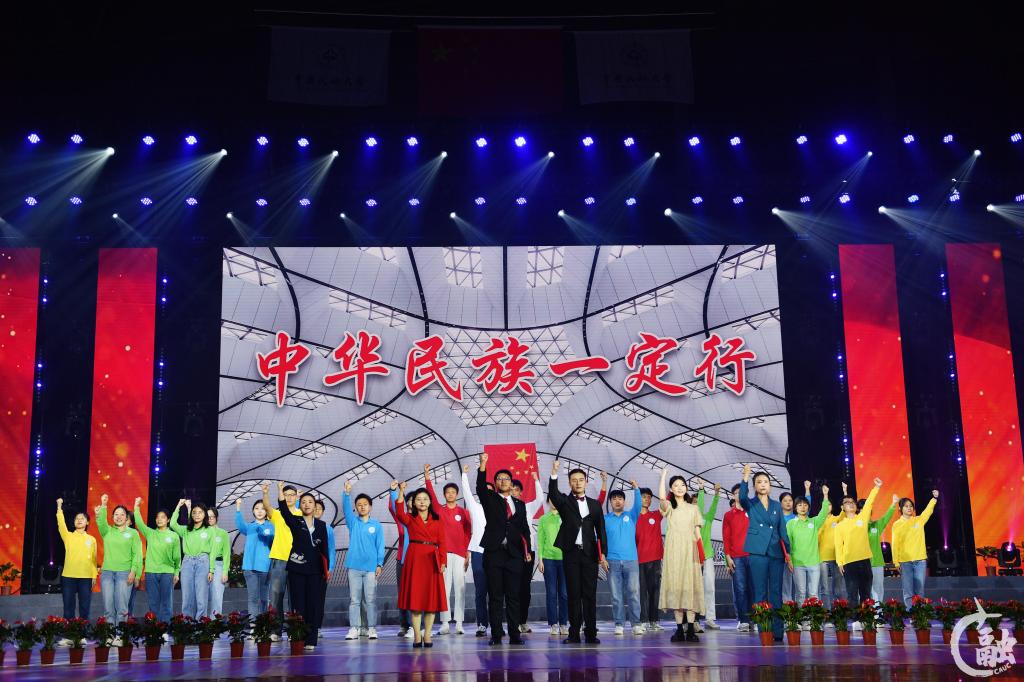 艺术思政大课《奔跑吧!青春》进入下篇。热情欢快的《站在草原望北京》融合了56个民族的舞蹈元素,展现了中航大青年师生心向北京,红心向党,紧密团结在以习近平同志为核心的党中央周围,坚定信心、同心同德,埋头苦干、奋勇前进的斗志。情景音乐剧《有我》《我的梦》讲述了中航大青年学子扎根祖国大地,让青春的梦想在祖国最需要的地方绽放。音乐快板《颂模范,学模范,点赞身边好榜样》讲述了中航大优秀青年学子勤学苦读,钻研科学,投身基层,志愿服务的故事,用榜样的力量激励观众坚定不移听党话、跟党走,怀抱梦想,脚踏实地,立志把自己培养成“德智体美劳”全面发展的时代新人。由飞行分校、乘务学院、空中交通管理学院、电子信息与自动化学院组成的拉歌方阵掀起了艺术思政大课的高潮。《我相信》《倔强》《星辰大海》《孤勇者》的歌声此起彼伏,带动全场一起大合唱,让观看的师生沉浸式参演,汇聚起笃行不怠,奋勇前进的磅礴力量。情景歌舞《领航》唱出了中航大师生更加紧密团结在以习近平同志为核心的党中央周围,踔厉奋发,勇毅前行的豪情。艺术思政大课在《一起向未来》的歌声中落下帷幕……在场师生被创新形式的思政大课深深吸引,久久不愿离去。