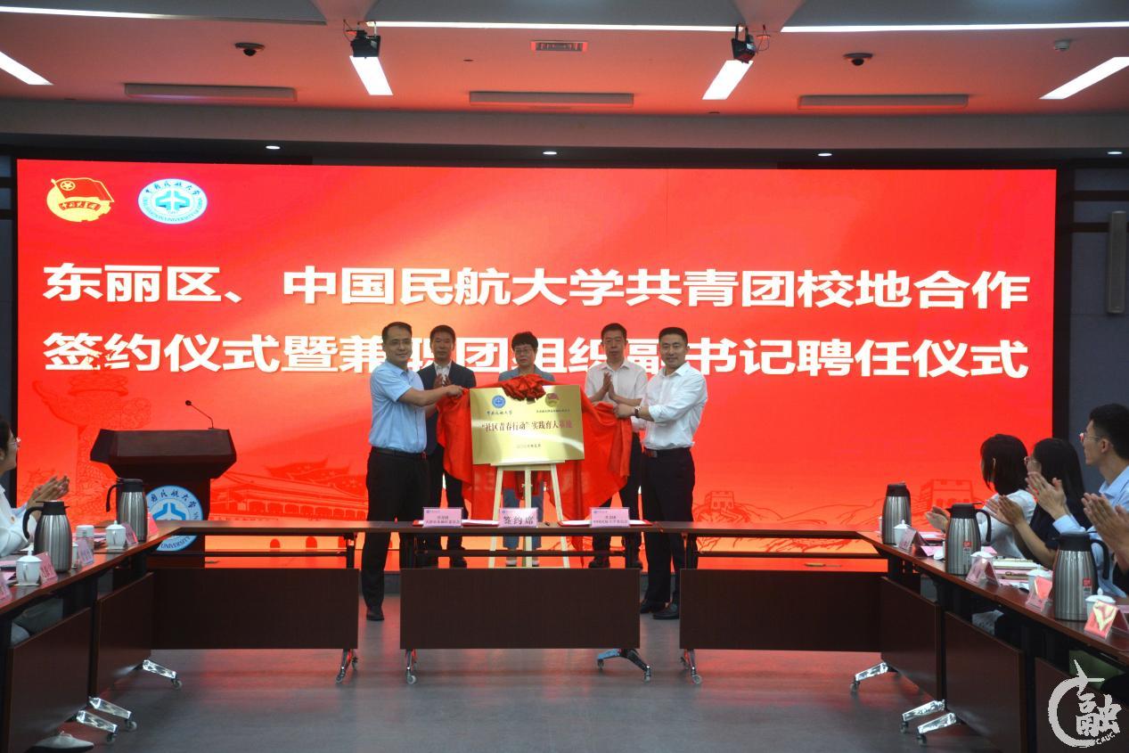 本网讯 5月23日,中国民航大学、天津市东丽区共青团校地合作签约仪式暨兼职团组织副书记聘任仪式在学术交流中心举行。团市委基层建设部部长方伟、中国民航大学党委副书记赵洪海、东丽区委副书记陈媛出席,东丽团区委、各街道团委负责人,社区团组织负责人代表,中国民航大学团委负责人,在校师生兼任街道、社区副书记代表参加。