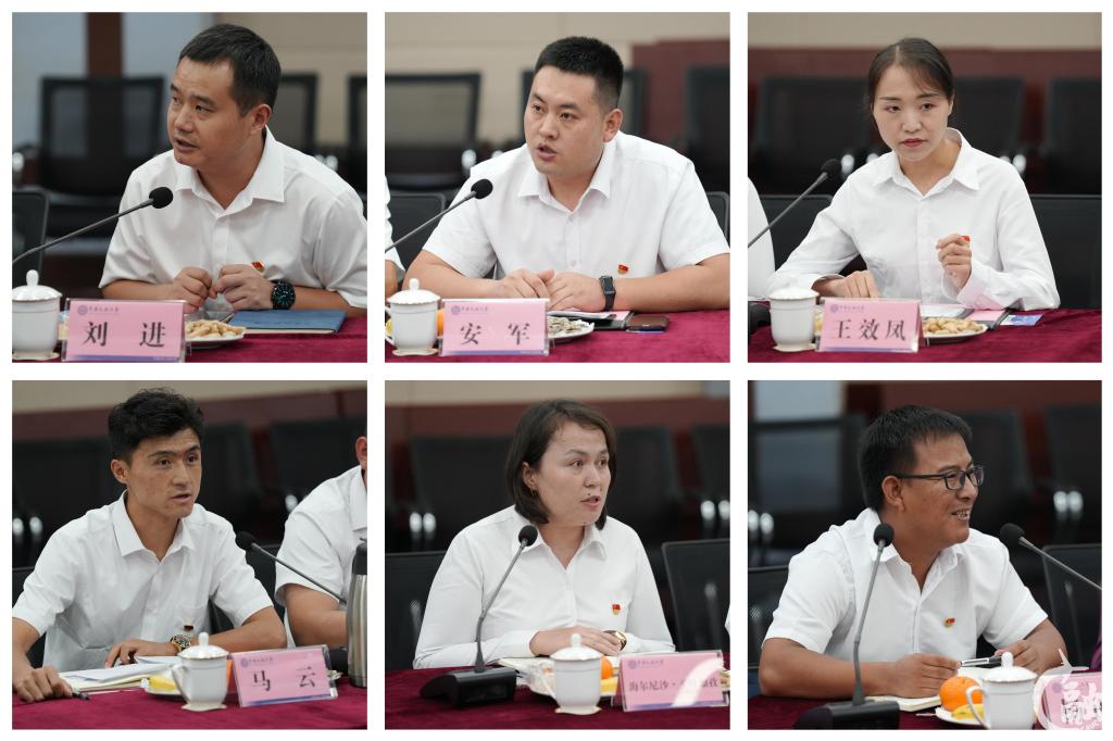策勒县教育局党组成员、第一中学教师、党总支书记刘进挂职学校教务处实践教学管理科副科长,他深知自己的责任与使命,感恩民航大学提供的良好学习环境,并详细介绍来校挂职交流后,为推动大中小学思政课一体化建设开展的实践。他表示,要在民航大学认真学习,以实际行动感恩祖国、感恩党,感恩民航大学的帮助,把民航大学精神带回策勒。