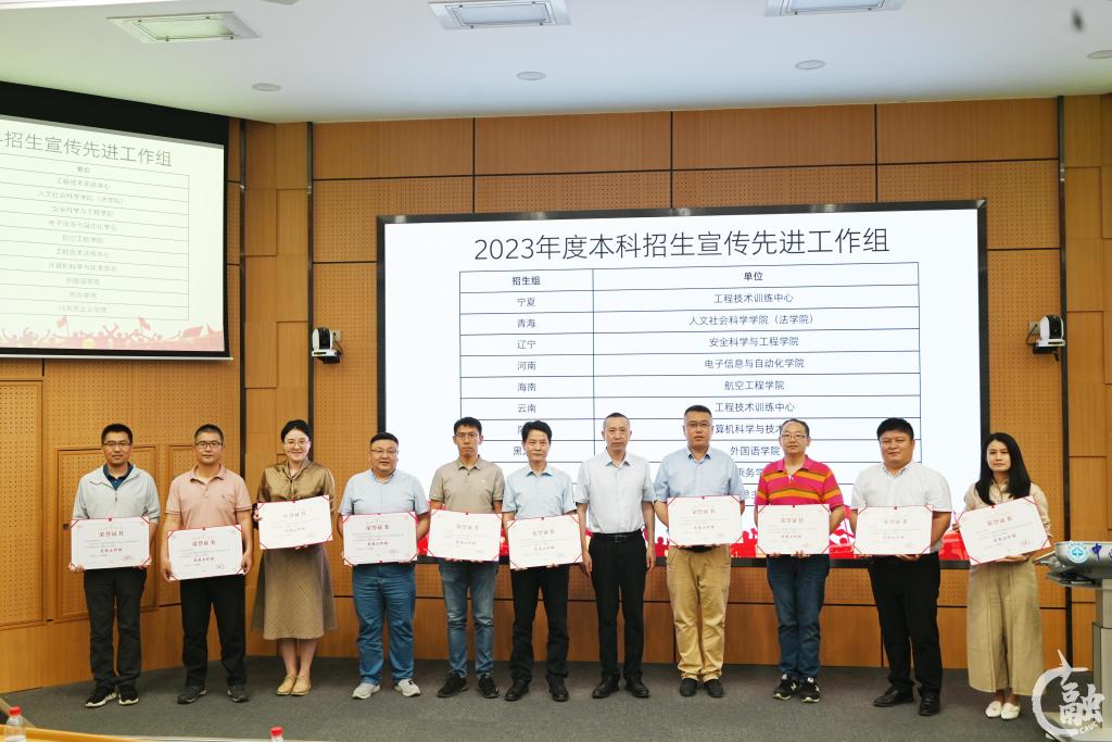杨虎为学校2023年度招生宣传先进工作组及优秀个人颁奖并提出表扬。杨虎指出,民航局在《新时代新征程谱写交通强国建设民航新篇章行动纲要》中要求打造高素质民航人才队伍,学校作为行业院校要承担人才培养重任,招生工作在全过程育人体系中发挥着关键作用,高质量完成招生工作是学校人才培养的第一步。他提出四点要求:一要高度重视,做好统筹布局安排,考虑如何用有限资源打好招生战。二要提升招生能力,做好工作准备。结合国家教育改革、省市政策调整,要掌握学校招生章程及具体政策,要突出招生重点。三要进一步推动招生宣传科学化。研究分析方法,提高招生宣传的精准性和实效性,争取以最小的投入取得最大的效果。四要严格遵守招生纪律。按照教育部、民航局相关政策要求开展招生工作。认真学习贯彻《中国共产党纪律处分条例》,坚守原则与底线,绝不触碰红线。