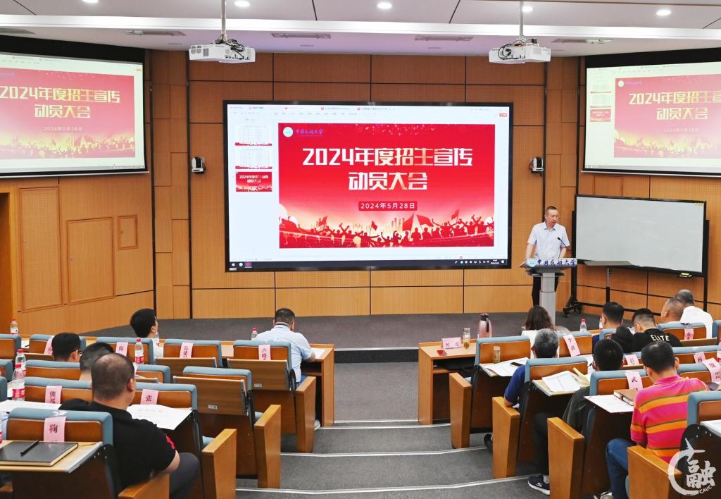 本网讯 5月28日,学校2024年招生宣传动员大会在东丽校区召开,校党委常委、副校长杨虎出席,纪委办、招生办、各招生组负责人及专兼职招生队伍参加。
