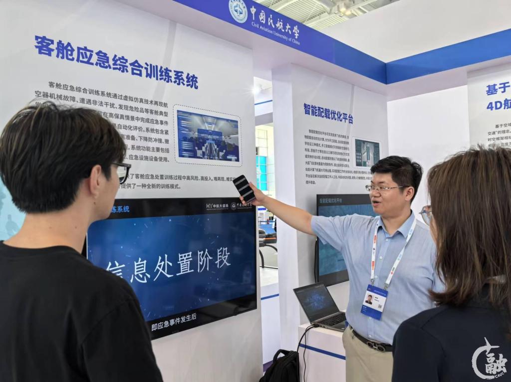 中航大参展成果包括“UAM垂直起降场概念模型及智慧运行系统”“航空监视载荷认证子系统”“基于空域栅格化的4D航迹实验平台”“智能配载优化平台”“客舱应急综合训练系统”“民航飞联网重点实验室”“5G-ATG地空宽带系统”“航空大数据平台”“H05系列远程型ADS-B移动基站”“M6 RTK六旋翼网联无人机”“M40智能巡飞无人机”“M76智能巡飞无人机”“飞行区三维场景建模及引擎系统”“郁金香智慧学习平台”。