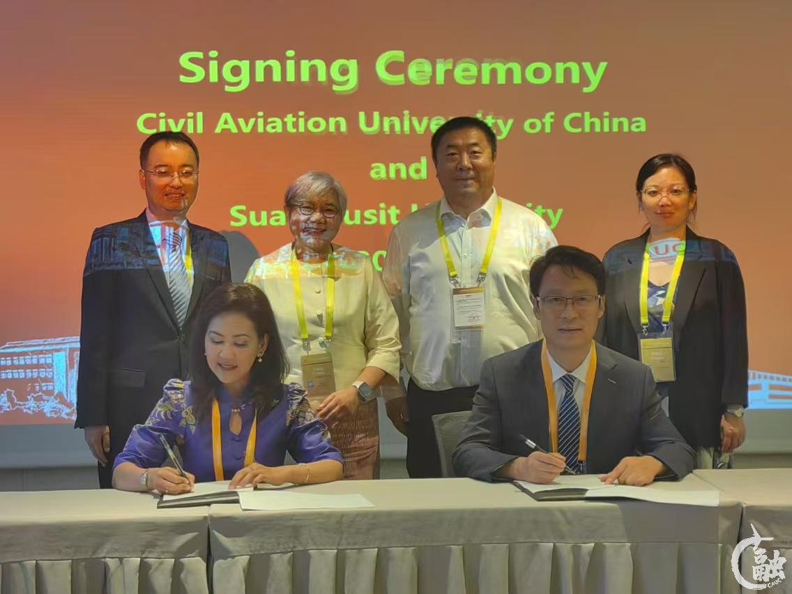 本网讯 8月21日,2024中国-东盟教育交流周开幕,开幕式上发布《中国-东盟千校携手计划倡议》,中国民航大学作为首批入选“中国-东盟千校携手计划”项目学校受邀参加此次活动。会上,中国民航大学副校长杨新湦与泰国川登喜大学(Suan Dusit University)副校长PORNCHANIT KAEW-NATE共同签署两校的合作备忘录,学校国际处和乘务学院领导及泰国川登喜大学华欣校区副校长PANARAT SRISAENG和校长助理曹思远等参加签约仪式。