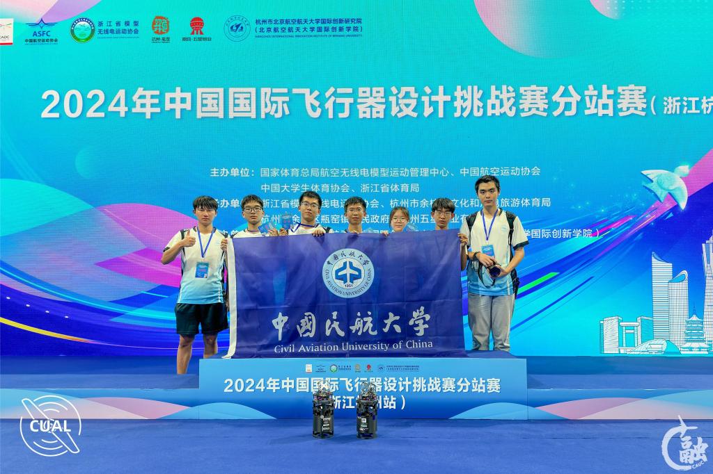 本网讯 日前,由国家体育总局航空无线电模型运动管理中心、中国航空运动协会、中国大学生体育协会、浙江省体育局主办的2024年中国国际飞行器设计挑战赛分站赛(浙江杭州站)在余杭区瓶窑镇举行,来自全国各地的44支代表队、600余名领队、教练员、运动员参赛。中国民航大学在本次比赛中收获单项金牌2枚、单项团体银牌1枚及一等奖2项。