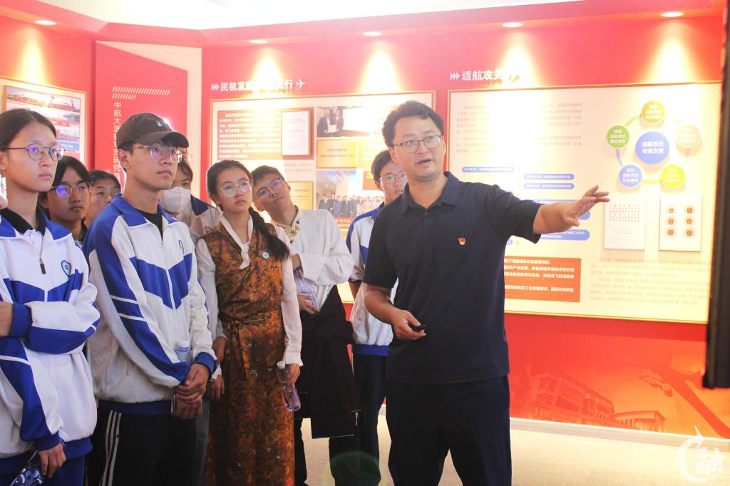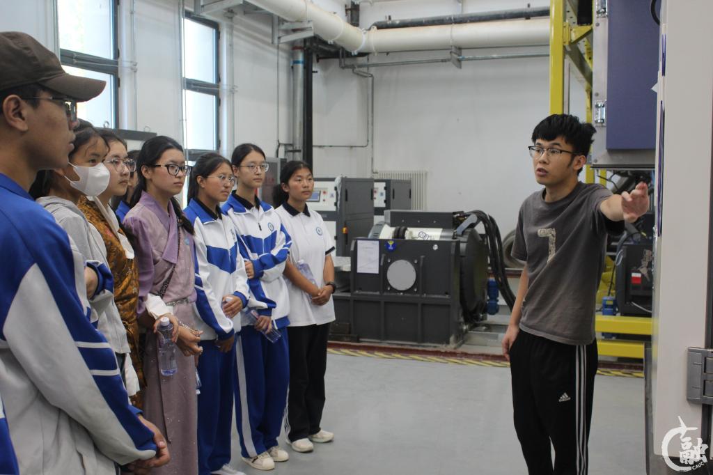 在民用航空器适航审定技术重点实验室,教师向同学们生动系统地讲述实验室开展的实验项目。同学们进入到电磁兼容暗室后,庞大的负载电源、全封闭抗干扰环境、极具科技感的内墙,让他们感受到科技创新的魅力。