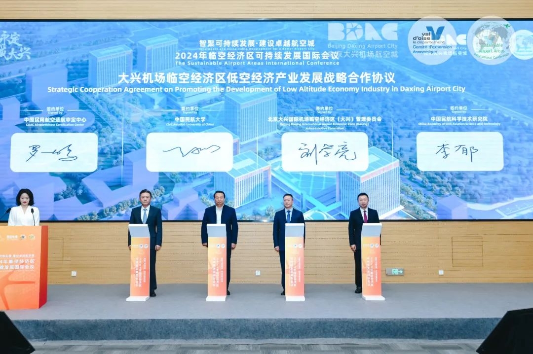 本网讯 9月25日,2024年临空经济区可持续发展国际会议举行开幕式,中国民航大学、中国民航科学技术研究院、中国民用航空适航审定中心三大民航领域权威机构与临空区大兴片区管委会共同签署《关于推动大兴机场临空经济区低空经济产业发展的战略合作协议》,加速推进临空区大兴片区民航科创基地建设,围绕“适航与安全”主题,探索构建国家级低空经济新型研发机构,领航低空经济产业发展。校长丁水汀出席会议。