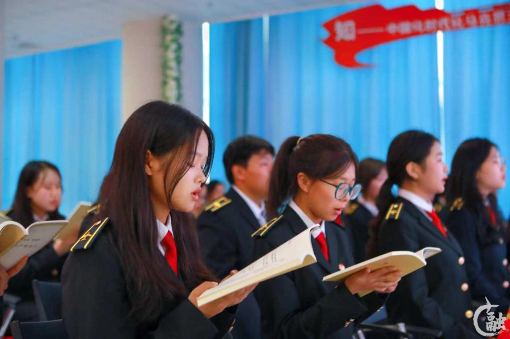 全体师生庄严诵读《共产党宣言》。马克思主义理论之光带来了中华民族的希望。这份马克思主义纲领文献如同灯塔,坚定人们理想信念,照亮了无数共产主义者的奋斗之路。在场师生重温初心,从中汲取了强大精神动力,坚定了决心意志,明确了所肩负的历史使命。