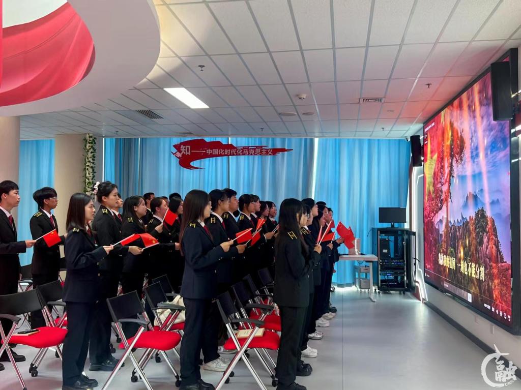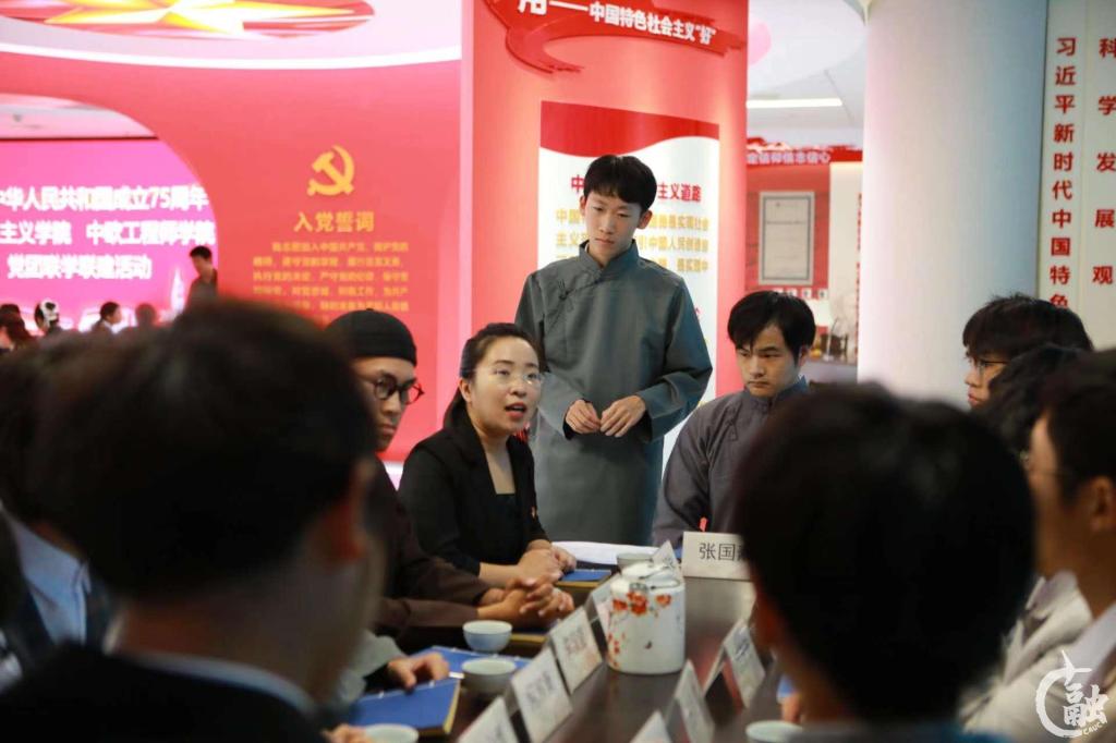 本网讯 在中华人民共和国成立75周年之际,马克思主义学院2022级、2023级思想政治教育专业和中欧航空工程师学院2022级工科试验班班团干部联合开展党团学建活动。在刚刚揭幕启用的中国民航大学思政课沉浸式教学创新中心,双方40名师生代表,通过一系列别出心裁的体验活动,共同致敬祖国发展的光辉历程,抒发航大师生民航心、家国情。