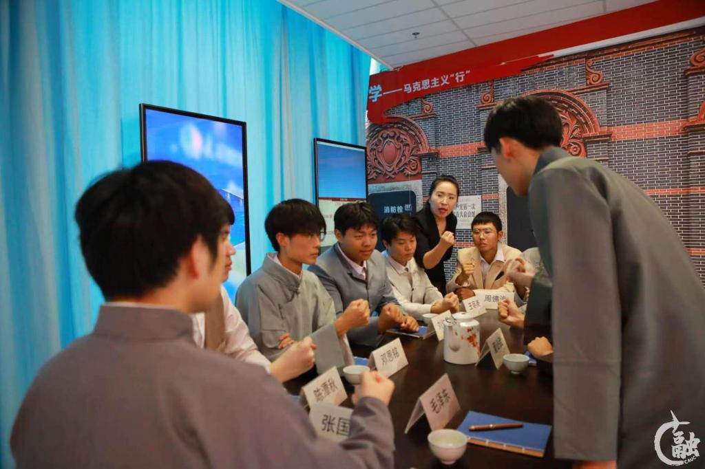 在令人心潮澎湃的“一大”会议红色情景剧体验环节,参与师生置身于精心布置的会议场景,在瞬间仿佛回到了那个风雨飘摇的年代,亲身感受到了中国共产党诞生之初的艰辛与荣耀。这一沉浸式体验不仅让历史活了起来,也让每个人的心灵得到了深刻的触动——生逢盛世,定当不负盛世。“这次沉浸式体验,很有代入感。缅怀历史,有那么一群怀着对马克思主义憧憬的有志之士,红船启航,破浪而行,确立初心。展望未来,从建党起点走来,百年征程波澜壮阔,百年初心历久弥坚。奋楫笃行,作为我们这一代共产主义接班人,一定传承红色基因,赓续红色血脉,续写时代华章。”中欧航空工程师学院2022级工科试验班团支部书记吴昊阳动情地说。
