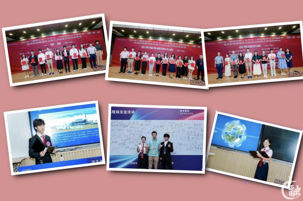 本网讯 日前,2024年“高教社杯”大学生“用外语讲好中国故事”优秀短视频作品征集活动决赛在湖南大学落幕。中国民航大学是唯一有2件作品进入全国决赛并均获得一等奖的高校,成为本次赛事的一大亮点,得到诸多专家与同行的赞誉与肯定。同时,中国民航大学获得优秀组织奖,外国语学院6名学生参与2件作品编排与制作、3名外国语学院教师与1名马克思主义学院教师参与指导,外国语学院副教授张长颉获得优秀指导教师奖。