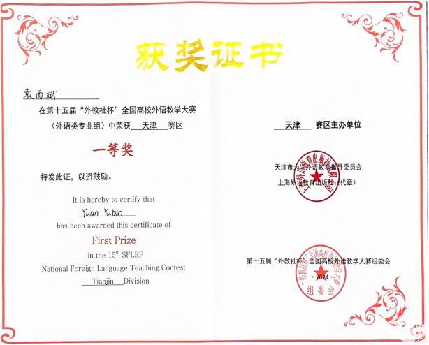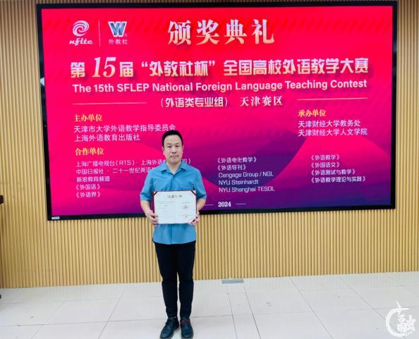 本网讯 日前,第十五届“外教社杯”全国高校外语教学大赛(天津赛区)比赛在天津财经大学举行,中国民航大学外国语学院教师袁雨斌以优异的表现荣获天津赛区一等奖。