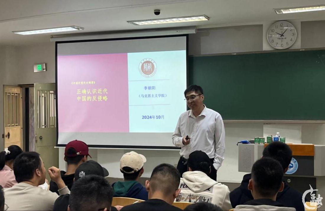 李朝阳以“正确认识近代中国的反侵略”为主题,重点讲授义和团运动的兴起原因,从不同观点、运用不同辨析方法对义和团运动的性质与影响展开讨论。李朝阳引用大量史料进行论述,并结合当前社会现实与时代背景进行比较,引导学生理解义和团运动的意义。