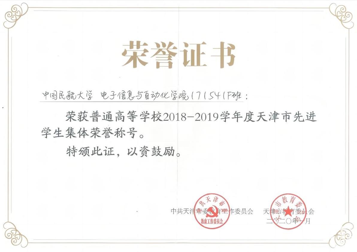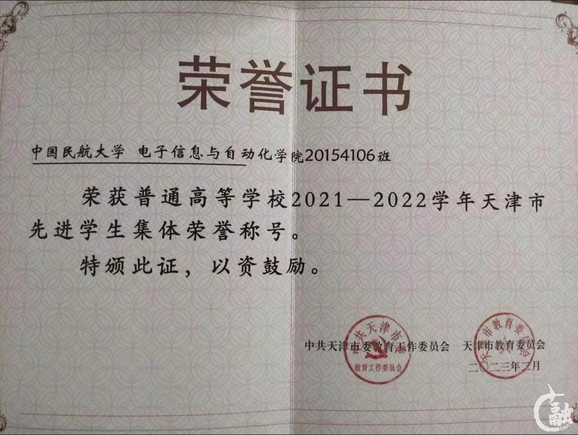 171541F班、20154106班获得天津市先进学生集体荣誉称号
