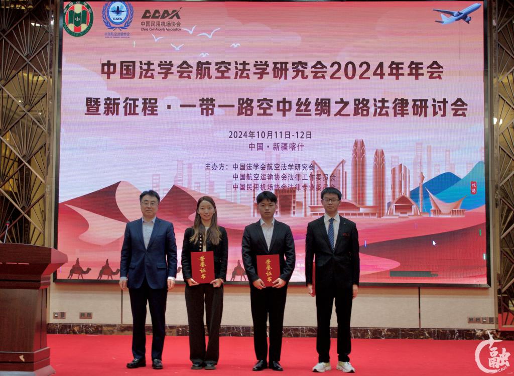 本网讯 日前,中国法学会航空法学研究会2024年年会暨新征程·一带一路空中丝绸之路法律研讨会在新疆喀什举办。中国民航大学法学院副教授刘佳、贾圣真和硕士研究生李肖、陈娴、李伯杰受邀参会。法学院2022级法律硕士(法学)研究生李肖投稿论文《安全、权利与效率——民航旅客数据治理的价值博弈与选择》从80余篇会议论文中脱颖而出,荣获一等奖。贾圣真在“低空经济·通用航空的法律保障”环节发言,李肖受邀在青年航空法论坛发言。