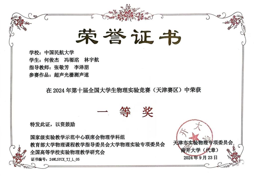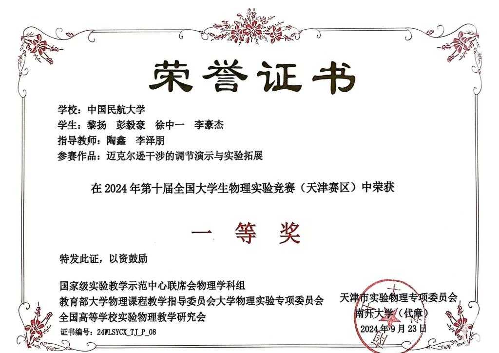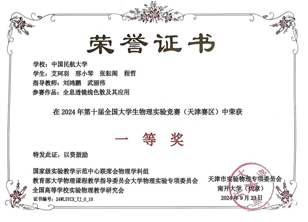 本网讯 近日,第十届全国大学生物理实验竞赛(天津赛区)落下帷幕,本次比赛吸引来自天津市16所高校99支队伍的386名师生参赛。中国民航大学12支队伍参赛,经过激烈角逐,3支队伍获一等奖,6支队伍获二等奖,3支队伍获三等奖。天津市共有4个直通全国赛决赛的名额,学校参赛队伍获得其中2个名额。