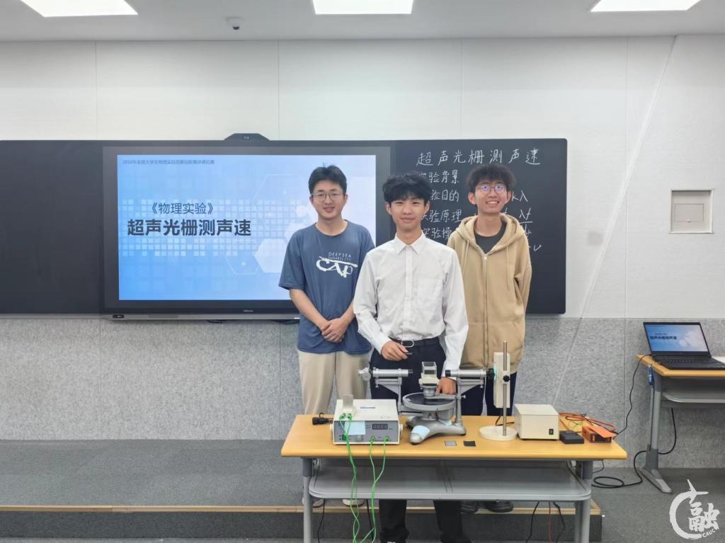 获得讲课类一等奖并直通国赛决赛的材料物理专业学生冯塬洺说:“参加这次物理实验竞赛,是我大学生涯中一段意义非凡的经历。在这个过程中,我收获了知识、技能以及珍贵的团队友谊。随着深入研究题目、设计教学内容和规划讲课流程,我们遇到过诸多挑战:如何将复杂的物理实验原理以简单易懂的方式传递给听众?怎样在有限的时间内展现讲述重点和实验创新点?为了解决这些问题,我们分工合作,查阅大量的文献资料,在老师们的指导下不断地进行实验探究,深入分析过往的优秀讲课案例,我们的思路逐渐清晰,教学方案也日渐完善。当我回过头来看我们的备赛过程,我感受到一个人取得的成绩与付出的时间是成正比的。我们要感谢指导老师们帮助我们开拓思路,悉心指导我们取得好成绩。”