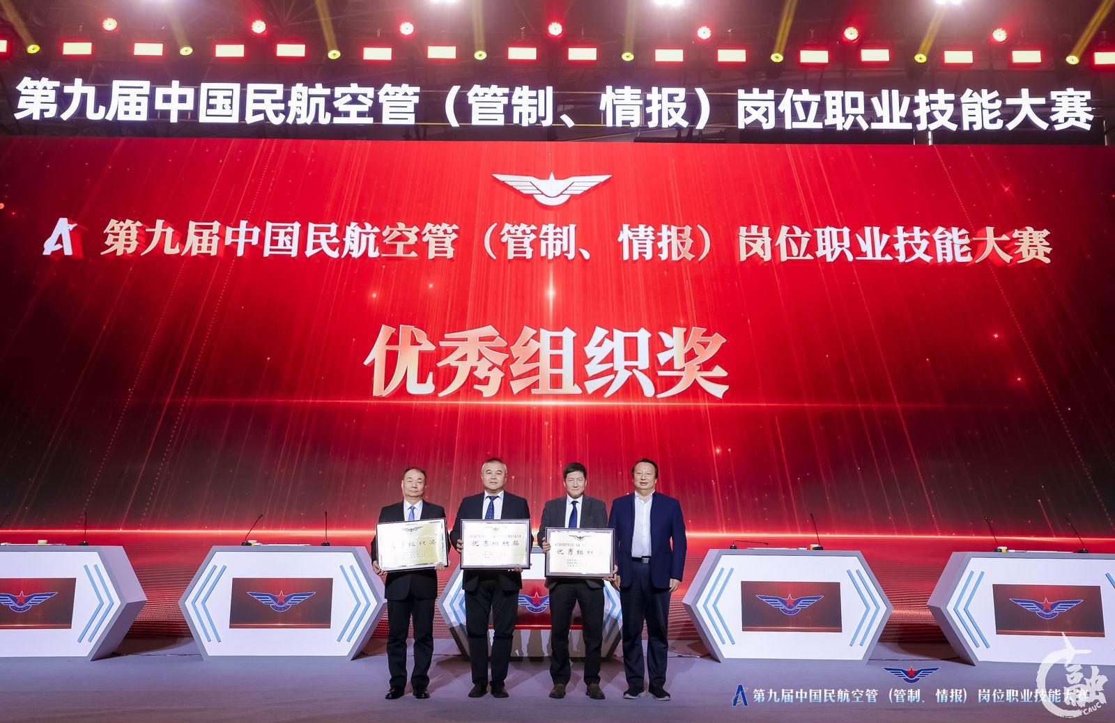 中国民航大学校长丁水汀(右一)颁发优秀组织奖