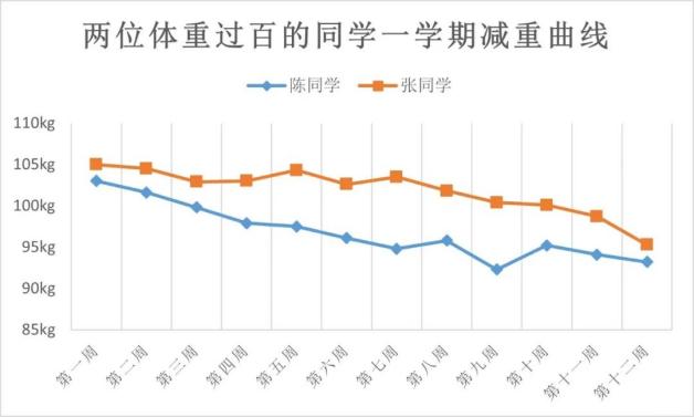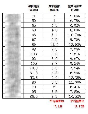 经过一学期系统学习运动减脂理论知识和训练方法,科学合理控制饮食摄入,学生们都收获满满。全班学生平均减重7.18kg左右,减重最多的学生贾育潇减掉11.5kg,全班学生平均减重占体重百分比9.14%,减重比超过10%的有5名学生。