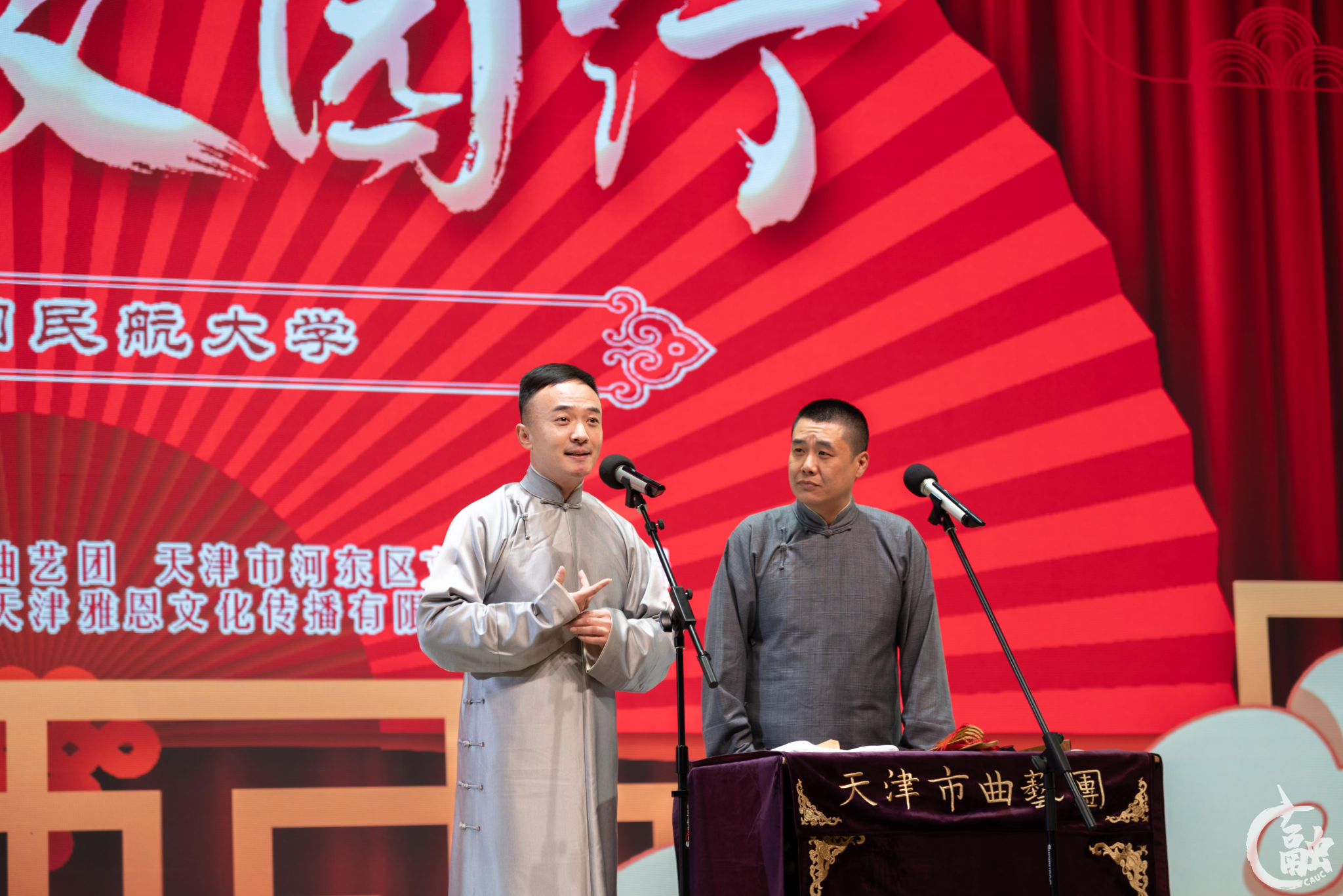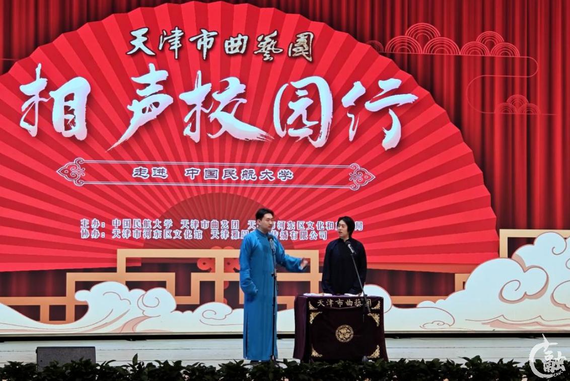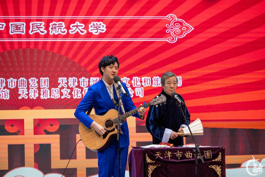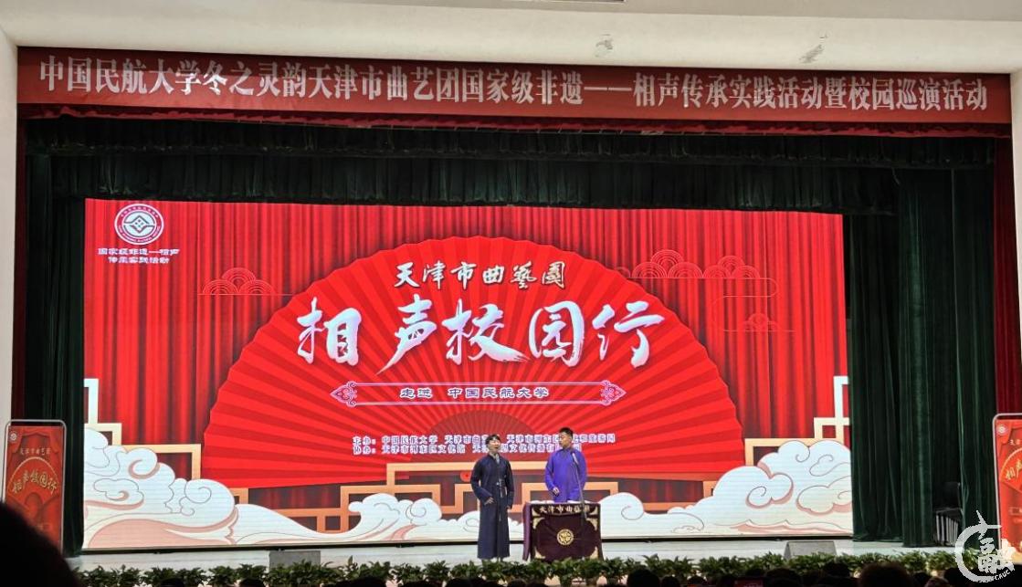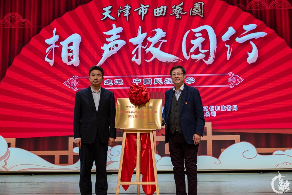 活动伊始,中国民航大学与天津市曲艺团进行了国家级非遗项目---相声实践传习基地的揭牌仪式,中国民航大学党办校办主任、团委书记何珠城与天津曲艺团副书记、副团长阎永生共同揭牌。本次共建是双方传承和弘扬中华优秀传统文化,以非遗文化传承发展和大学生美育教育的深度融合为切入点,积极探索非物质文化遗产在大学生美育教育中新发展路径进行的深度探索合作。
