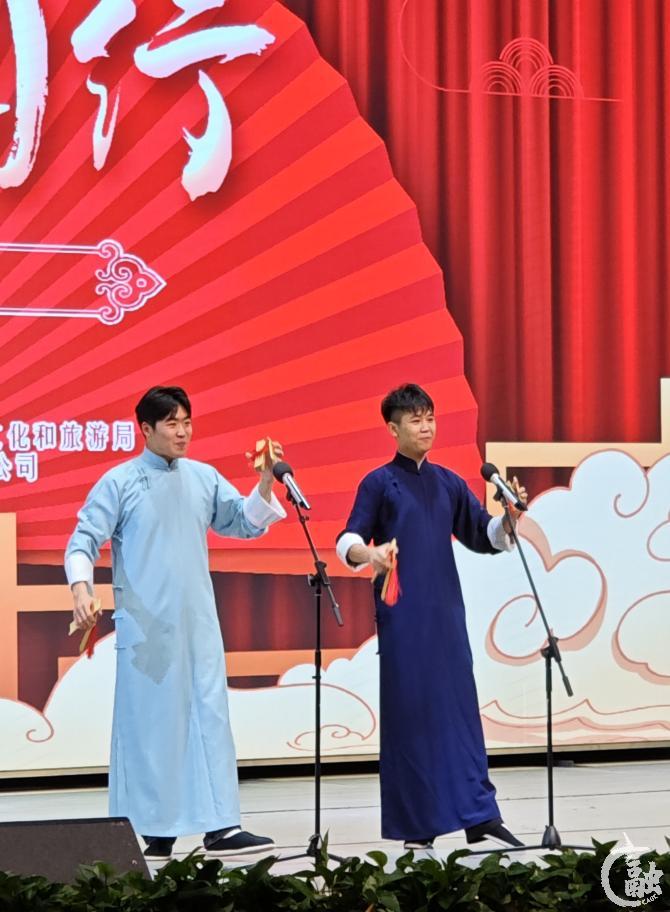 全场演出节目精彩纷呈,快板《绕口令》以其独特的节奏感和语言魅力拉开了演出的序幕。随后,相声《点头数来宝》《写对子》《笑口常开》等经典作品轮番上演,演员们通过生动的表情、夸张的动作和幽默的语言,将一个个贴近生活的故事演绎得妙趣横生,让现场观众在欢笑中感受到了相声艺术的魅力。