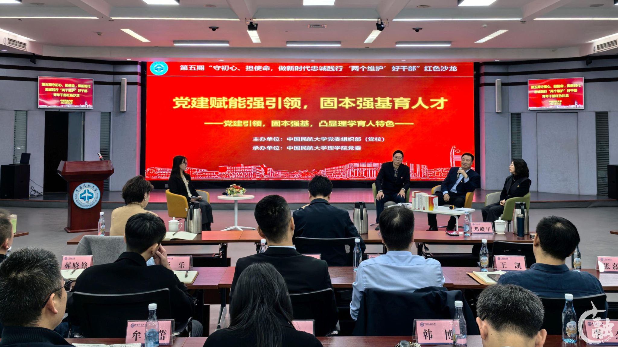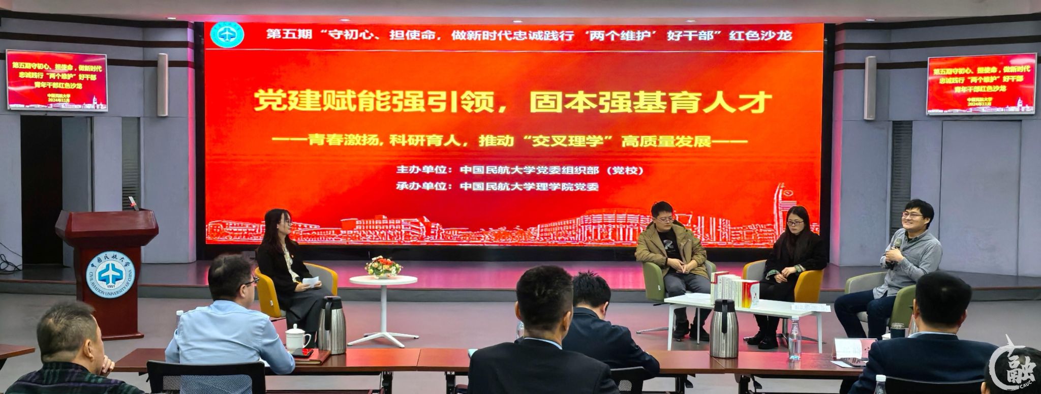 红色沙龙邀请天津大学邢鹏飞、郭嘉祥以及校内干部、教师等9人。沙龙分三个环节,第一个环节以“党建引领,固本强基,凸显理学育人特色”为切入点,围绕坚持以政治建设为统领,推动党的全面领导融入办学治校全过程,落实校党委“一融两高两大五抓六要”党建工作思路展开,深入交流了“融合式党建体系”的建设经验和长远规划,理学院“交叉理学、固本强基”的定位特色和发展规划以及“思政课程与课程思政协同育人”背景下如何实现思政课与理工科专业建设的互融共建等新思路、新方法、新路径。第二个环节以“革新理念,培育金课,提高本科人才培养质量”为题,围绕提升本科人才培养质量,推动高等民航教育体系发展、满足民航业发展需求以及提升国家竞争力等内容展开,为青年干部、教师分享了在新时代高等教育背景下,应该如何加强基础课的教育教学改革并直面教育教学改革攻坚行动中的重重挑战,牢牢抓住机遇,奋力推动实现高质量发展。第三个环节以“青春激扬,科研育人,推动‘交叉理学’高质量发展”为题,就如何推动跨学科交叉研究、提升创新能力、凝练交叉学科成果、组建交叉学科精英团队、营造交叉学科文化等方面进行深入交流。