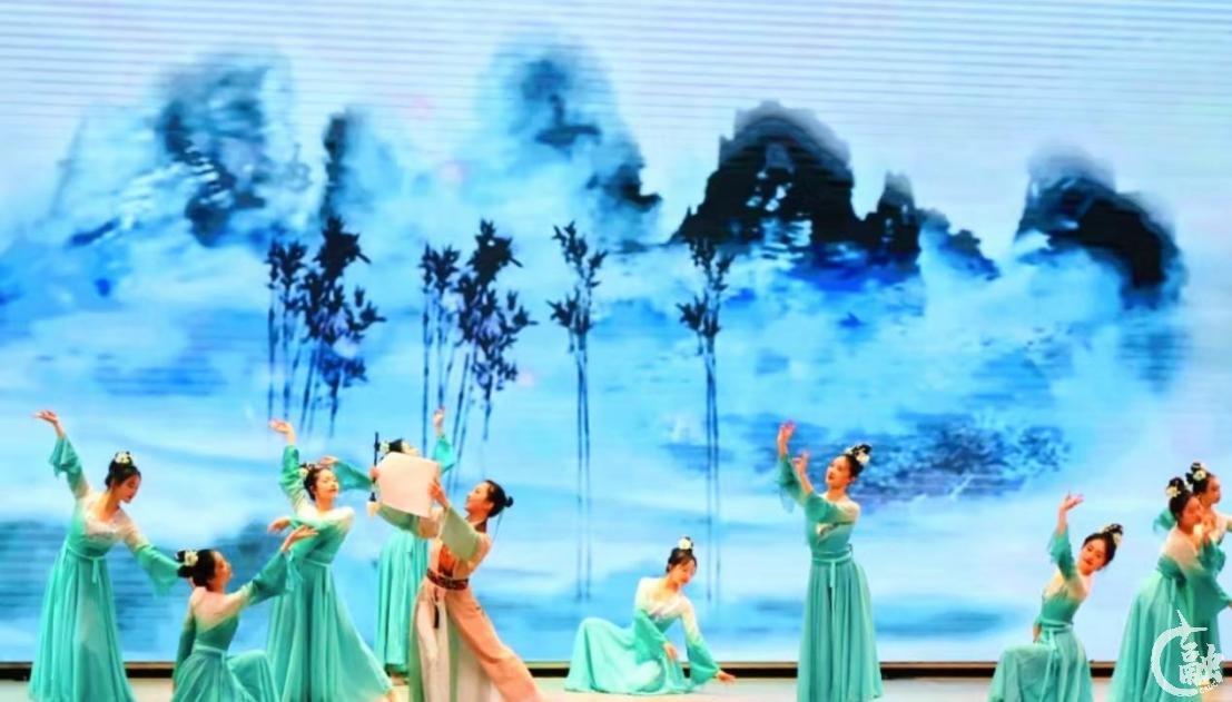 “青山远黛,近水含烟。”一支《青山远黛》舞蹈华丽开场,舞者翩若惊鸿,婉若游龙,为在座师生带来一场国风与美的视觉盛宴。
