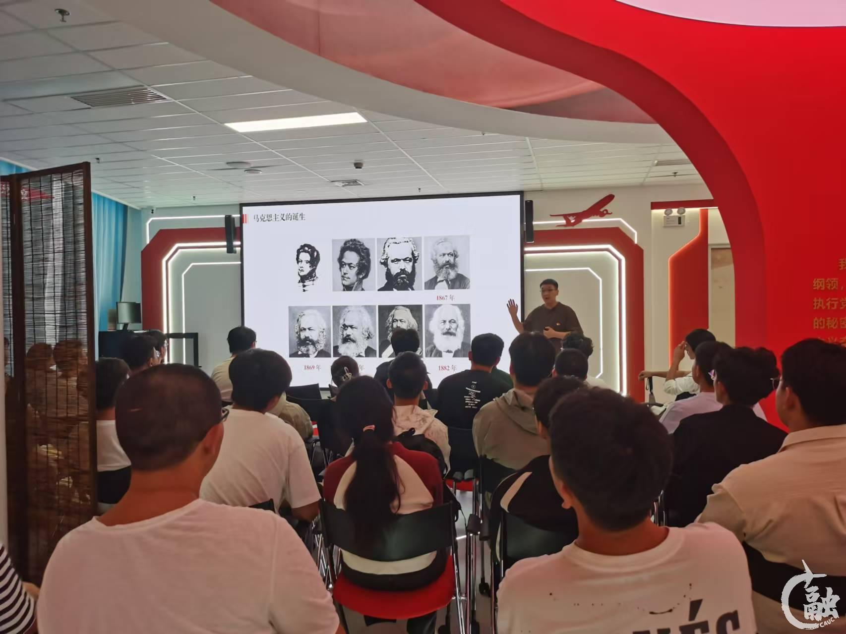在“走近马克思”教学专题,授课教师从“顶天立地的伟人”和“有血有肉的常人”两个维度讲述青年马克思和恩格斯的思想转变和伟大友谊,解读《共产党宣言》诞生的历史背景。在庄严诵读《共产党宣言》时,授课教师作《共产党宣言》原文精读辅导,剖析原文原理,带领学生体悟马克思主义的理论意旨。