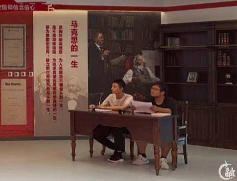 在“科学社会主义”教学专题,课程组利用情景剧方式,学生在教学创新中心还原场景“马克思书房”中扮演马克思、恩格斯,营造与伟人“跨时空交流”的沉浸式氛围,让学生在思想中与伟人们重逢,引导学生深入理解科学社会主义理论的深刻内涵。