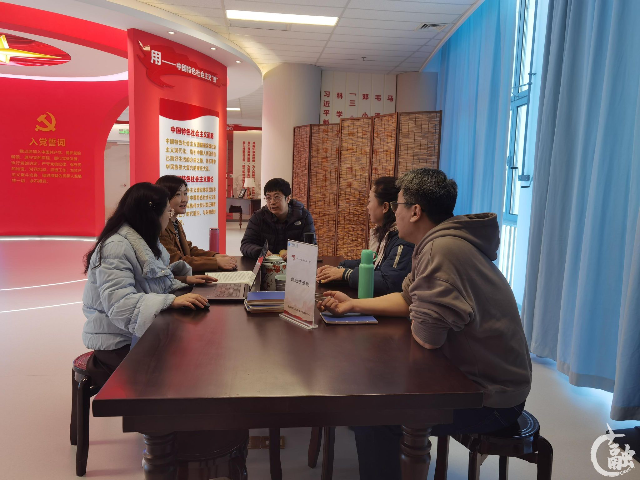 2024年9月,创新中心正式建成并投入使用。教学创新中心涵盖学、思、用、知、信、行6大功能区,学生通过红色情景剧演绎、VR大空间体验、集中授课研讨等方式,在沉浸式体验中深刻感悟中国共产党能,中国特色社会主义好,马克思主义行,中国化时代化的马克思主义行。