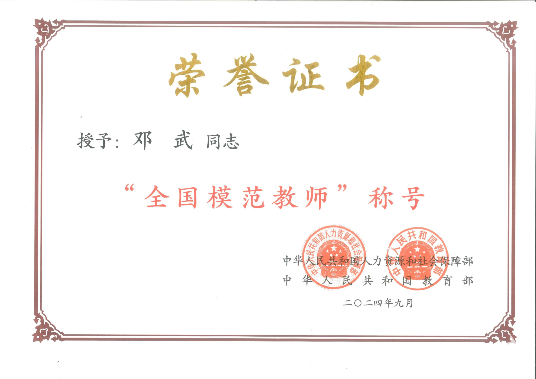 6、邓武教授获评全国模范教师