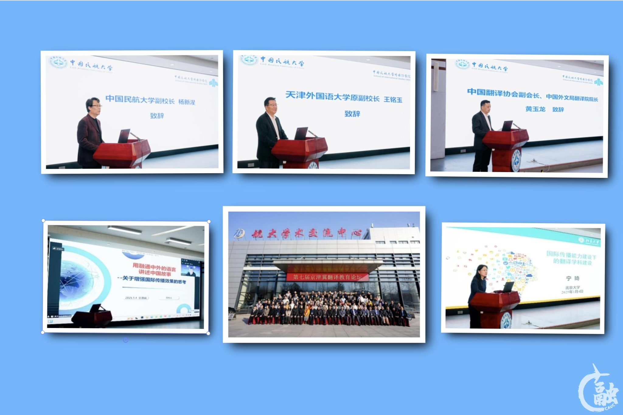 本网讯 近日,第七届京津冀翻译教育论坛在中国民航大学学术交流中心举办。中国民航大学副校长杨新湦、天津外国语大学原副校长王铭玉、中国外文局翻译院院长黄玉龙致辞,中国翻译协会常务副会长黄友义、北京大学副校长宁琦等14位专家学者作主旨报告,来自京津冀30多所院校、企业的相关翻译教育人士参会。本届论坛由中国民航大学外国语学院承办。