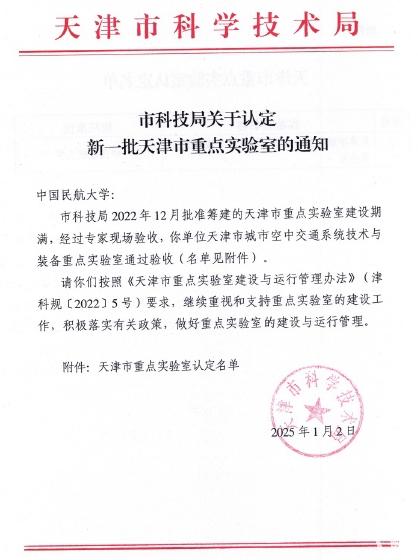 天津市城市空中交通系统技术与装备重点实验室于2022年12月22日由天津市科技局正式批准中国民航大学筹建,为期两年。经过两年的努力,实验室取得了显著成果:承担了14项国家级、省部级纵向课题,合计获得2214万元项目经费;完成了13项横向课题,共计获得1817万元项目经费;获得省部级二等奖4项、三等奖1项;授权国外发明专利2项、国内发明专利24项;发表学术论文61篇,出版专著2部;制定行业标准5个、团体标准7个。