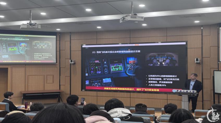 报告中,陈勇用亲身经历为中航大师生展示当代工程师的责任和担当,其对国产民机事业的热忱深深感染和鼓舞了现场的师生。陈勇娓娓道来的讲述不仅让国产民机的技术突破变得可知可感,更为青年学子指明了一条通过解决技术难题实现自身价值,将个人理想融入国家发展的成长道路。