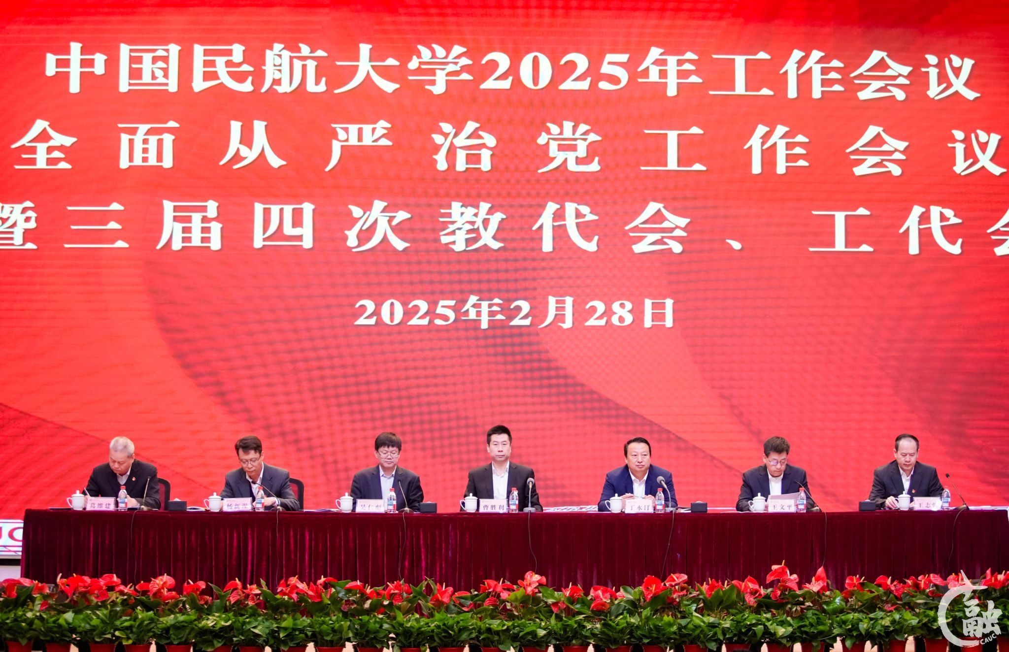 本网讯 2月28日上午,中国民航大学2025年工作会议、全面从严治党工作会议暨三届四次教代会、工代会在东丽校区礼堂召开。会议以习近平新时代中国特色社会主义思想为指导,全面贯彻落实党的二十大和二十届二中、三中全会精神,认真落实中央经济工作会议精神,落实民航局、天津市、教育部相关工作会议精神,总结学校2024年工作,分析当前面临的形势,部署2025年学校重点任务。校党委书记曹胜利作全面从严治党工作讲话,校党委副书记、校长丁水汀作工作报告。校领导,校党委委员、纪委委员,全体处级以上干部,二三级岗教师,省部级以上人才,民主党派主委,机关职能部门、直属单位科级及以上干部,中航大(天津)产业发展有限公司科级及以上干部,第三届教代会、工代会代表参加会议。