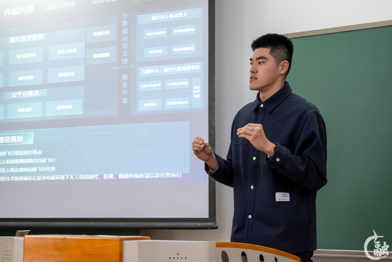 在评审现场,81件作品各放异彩。作品团队围绕研究背景、创新性、科学性、实用性、核心技术、潜在应用领域和教育意义等多个方面展开介绍,作品选题涵盖“卡脖子”难题、重大攻关科研课题、科技前沿技术、新兴领域热点问题等,充分展现民航学子运用专业知识、创新解决问题、勇于担当作为的精神风貌。评委从创新性、实际应用可行性、市场潜力和未来团队发展方向等方面进行点评与指导,为作品的进一步优化指明方向。现场的思想碰撞不断,观点交流热烈,学术氛围十分浓厚。