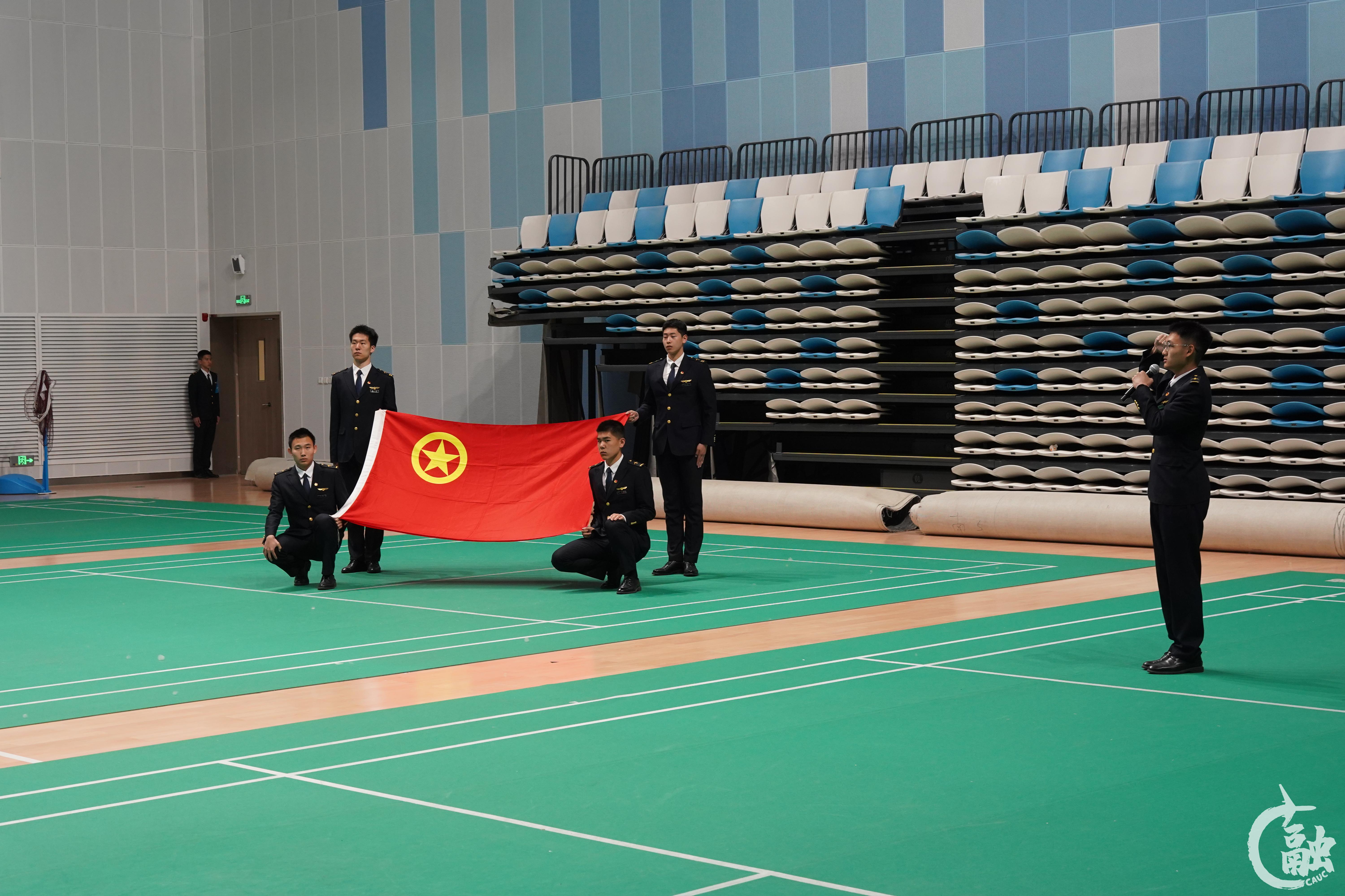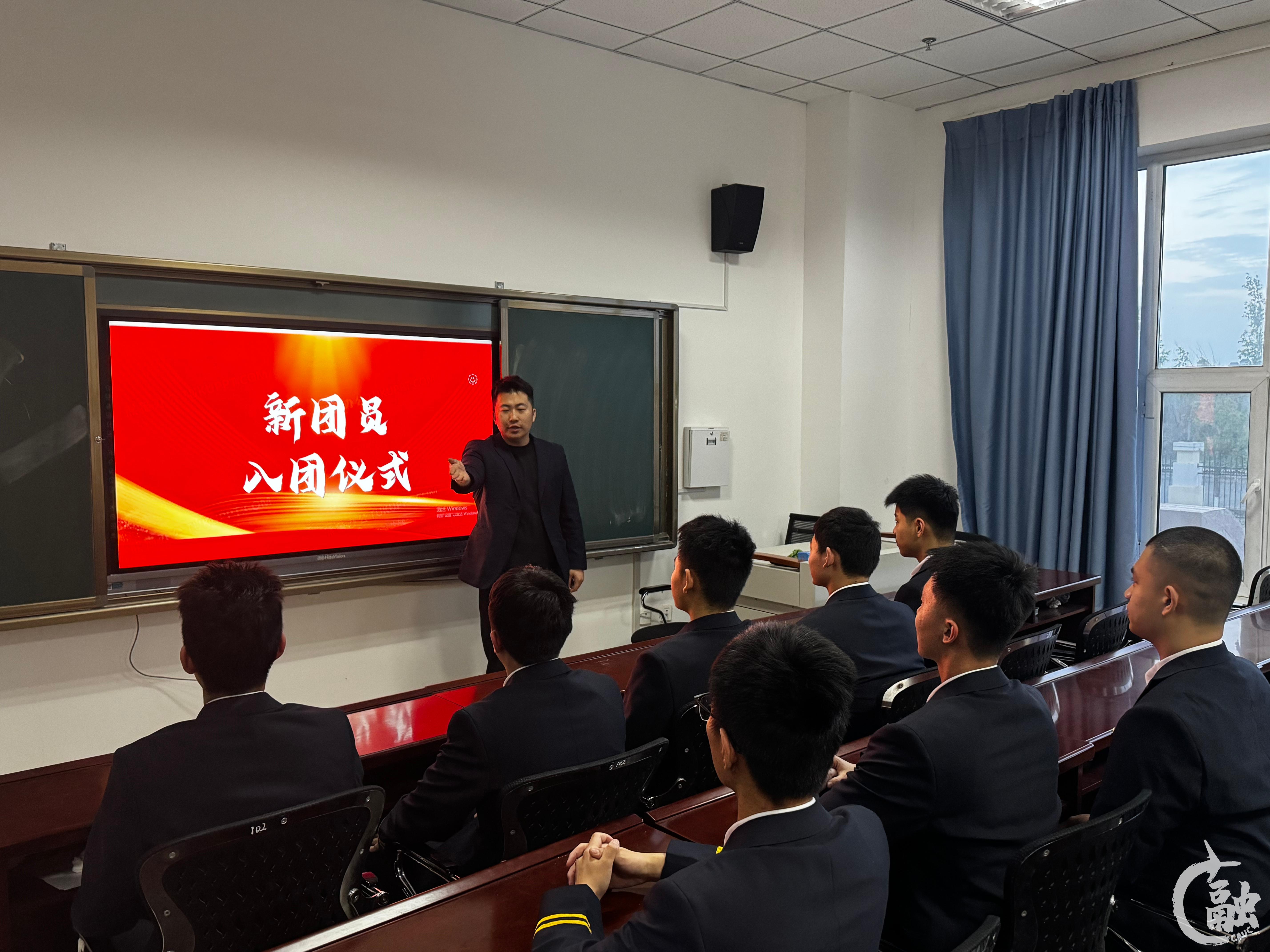 在入团宣誓环节,现场958名团员佩戴团徽,面向团旗庄严宣誓。“我志愿加入中国共产主义青年团,坚决拥护中国共产党的领导……”在飞行分校2024级学生李天一、理学院2024级学生张孟缘的带领下,铿锵的入团誓词在校园上空回荡。乘务学院2024级学生王善美、理学院2024级学生张润国作为新团员代表发言:“从今天起,我们将以更高标准要求自己,以五四精神为指引,书写属于民航青年的青春答卷!”