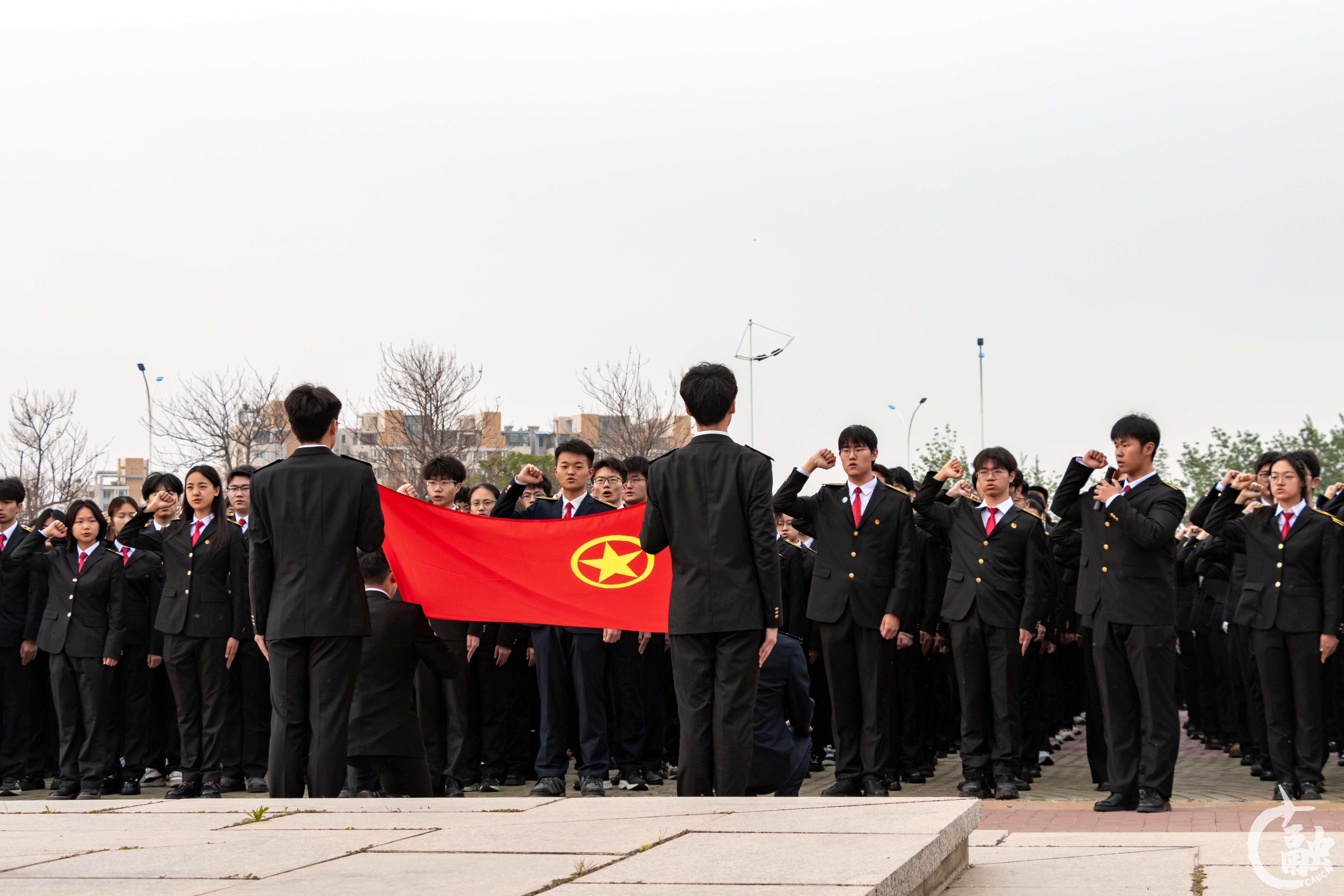 本网讯 承“五四”薪火,耀青春光芒。4月30日清晨,学校在东丽、宁河双校区,朝阳、内蒙、新疆三所航校举行“红旗飘扬·誓言铿锵”——“五四”主题升旗仪式暨新发展团员入团仪式。校团委、各学院团委、新发展团员等1500余名师生代表参加本次活动,以青春之名致敬五四精神,以铿锵誓言践行使命担当。