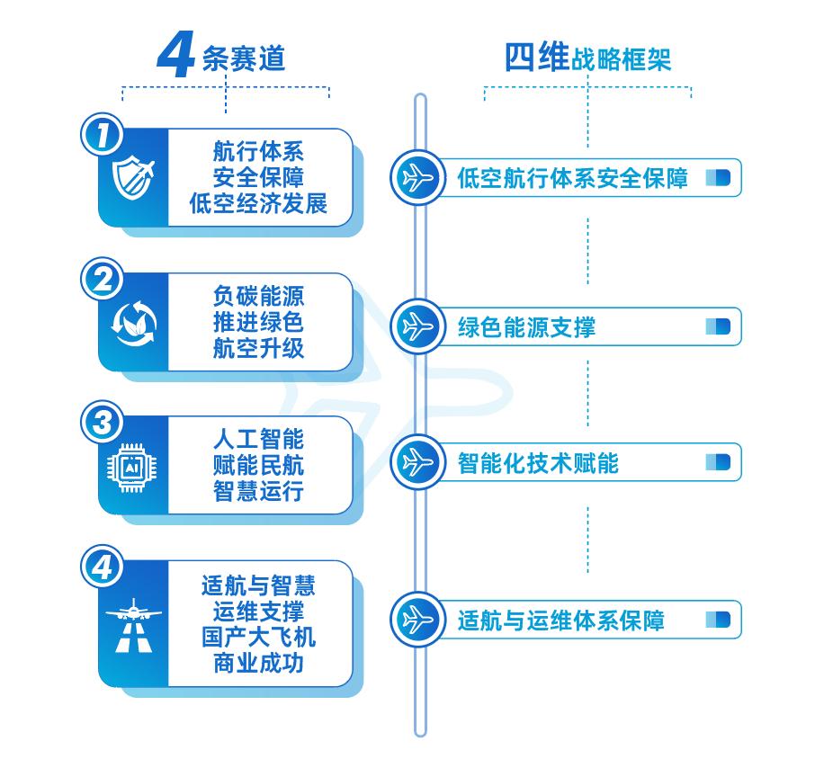 在当前低空经济快速发展的背景下,学校党委积极布局,明确航行体系安全保障低空经济发展、负碳能源推进绿色航空升级、人工智能赋能民航智慧运行、适航与智慧运维支撑国产大飞机商业成功等四条重要赛道。四条赛道相互支撑、协同发展,共同构成了中国民航大学推动低空经济发展的战略框架。中国民航大学将充分发挥自身在教育、科技、人才一体化方面的优势,为低空经济的未来发展提供全方位的支持,为国家战略产业的升级贡献重要力量。